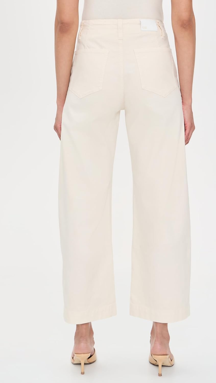 The Arellia Ankle is our high-rise barrel leg silhouette with a cropped ankle-length inseam. Crafted from super soft denim, this pant comes in an off-white shade with a tie at the waistband.
