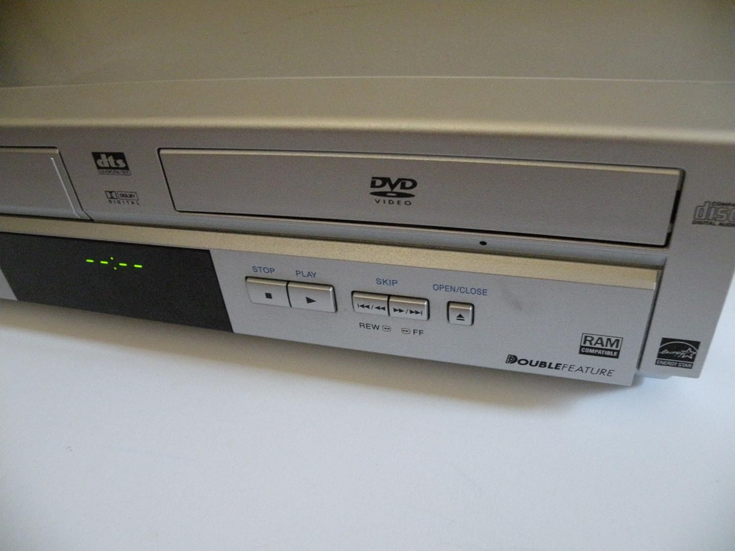 Detailed item info Product Identifiers Brand Panasonic Model PV-D4734 MPN pvd4734s UPC 9046627277648 Key Features DVD Type DVD Player Built-In Combo Features VCR Number Of Discs 1 Playable Disc Formats CD, DVD Features Parental Lock, Progressive Scan Playable File Formats JPEG, MP3 Progressive Scan Without Progressive Scan Video Video Output System NTSC Picture Control Zoom Audio Audio DAC 16 bit / 48 kHz Surround Sound Built-In DTS Decoder, Dolby Digital (Digital out only), Virtual Surround DVD Dynamic Range 90 dB(DVD) Connections Inputs Analog Audio x 1, Composite x 1, RF (TV) x 1 Outputs Analog Audio x 2, Component x 1, Composite x 1, Digital Audio Optical x 1, RF x 1, S-Video Front Panel Audio Input, Composite Input Convenience Remote Control Universal On Screen Display Yes: English, French, Spanish Instant Skip/ Replay -1 Sec Skip /-1 Sec Replay Record And Play Features One Touch Recording, Playlist Playback Recorder Recordable Disc Formats VHS Cassette Recording Speeds SLP, SP VCR Video heads 4 Dimensions Height 3.7" Width 16.9" Depth 10.8" Weight 8.5 lb.