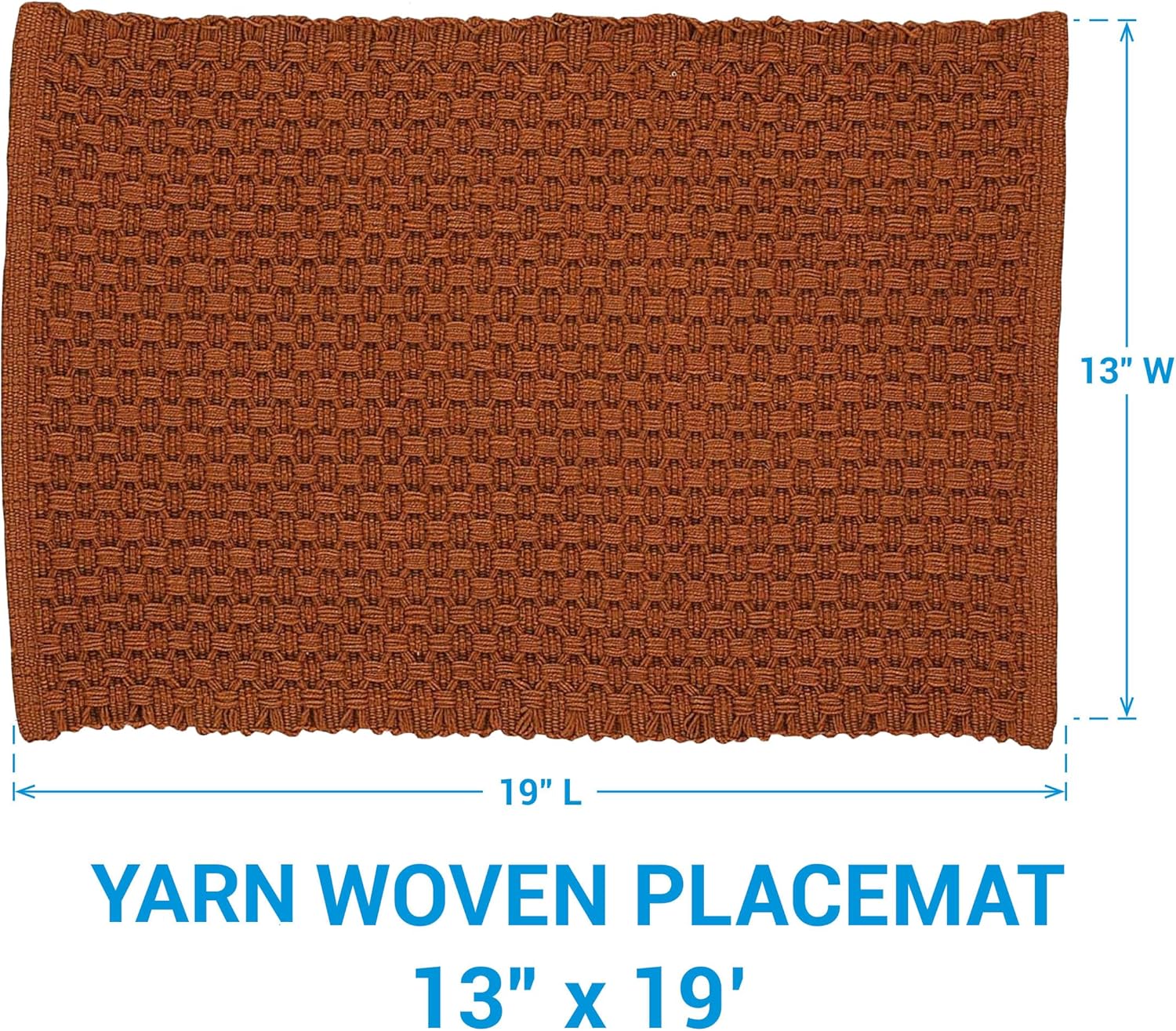 These placemats are a beautiful Autumnal solid color in a honeycomb weave that will undoubtedly be a lovely addition to your seasonal decor, or throughout the year. Pair them with like fall colors, or create a unique color scheme. Sure to be a tabletop favorite for everyone through each season.
