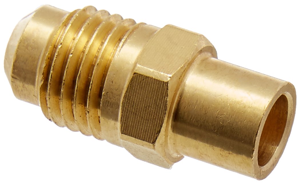 Flare to solder, flare, tube size 1/4 inch tube connection, material of construction Brass, outside dia .189 inch thread size 1/16 inch hex size 7/16 inch Length .98 inch pressure (psi) 450 to 2800, Temp range -65 to 250 degree F, standards UL listed for Flammable liquid, marine, refrigeration and gas, meets functional requirements of SAE J512 and J513, package quantity 10'.