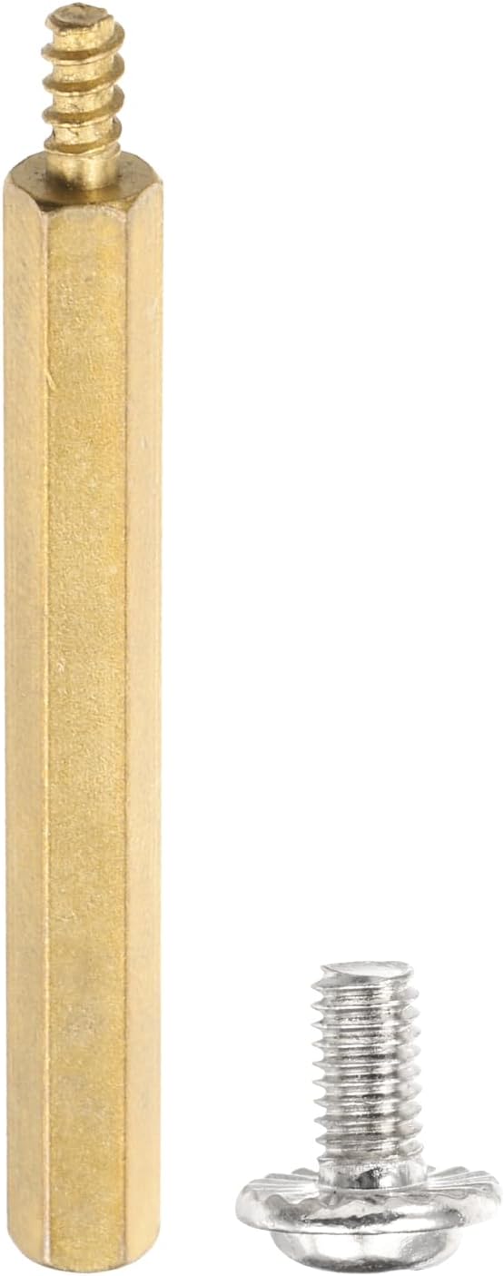 Standoff spacer is a fastener used to create space between two objects, often to properly position them. In the world of electronic components and electronic hardware, standoffs are typically used to space circuit boards, panels, doors, or gears. The hex spacer suitable for mounting on PCB circuit boards and machine boards, prevents the motherboard from short and helps cool. Provide enhanced security to your components.SpecificationColor: BrassMaterial: CopperHex Motherboard Standoffs Size: M3 x 4mm + 6mm, Total Length: 10mm / 0.39 InchMotherboard Screw Size: M3 x 6mmPacking List: 12 Set M3 Hex Standoff Spacer with Motherboard ScrewAdvantageOur hex motherboard standoffs are made of durable copper material which has good corrosion resistance to bad environments like high temperature, cold weather, and high humidity areas. Motherboard standoffs have rust resistance and excellent oxidation resistance, which can ensure long-lasting use.InstructionHexagon standoff spacer, easy to install, the hexagonal design allows tightening with a wrench. Packaged in a transparent plastic bag of convenient carry and storage.Note: Before placing the order, please confirm the size.
