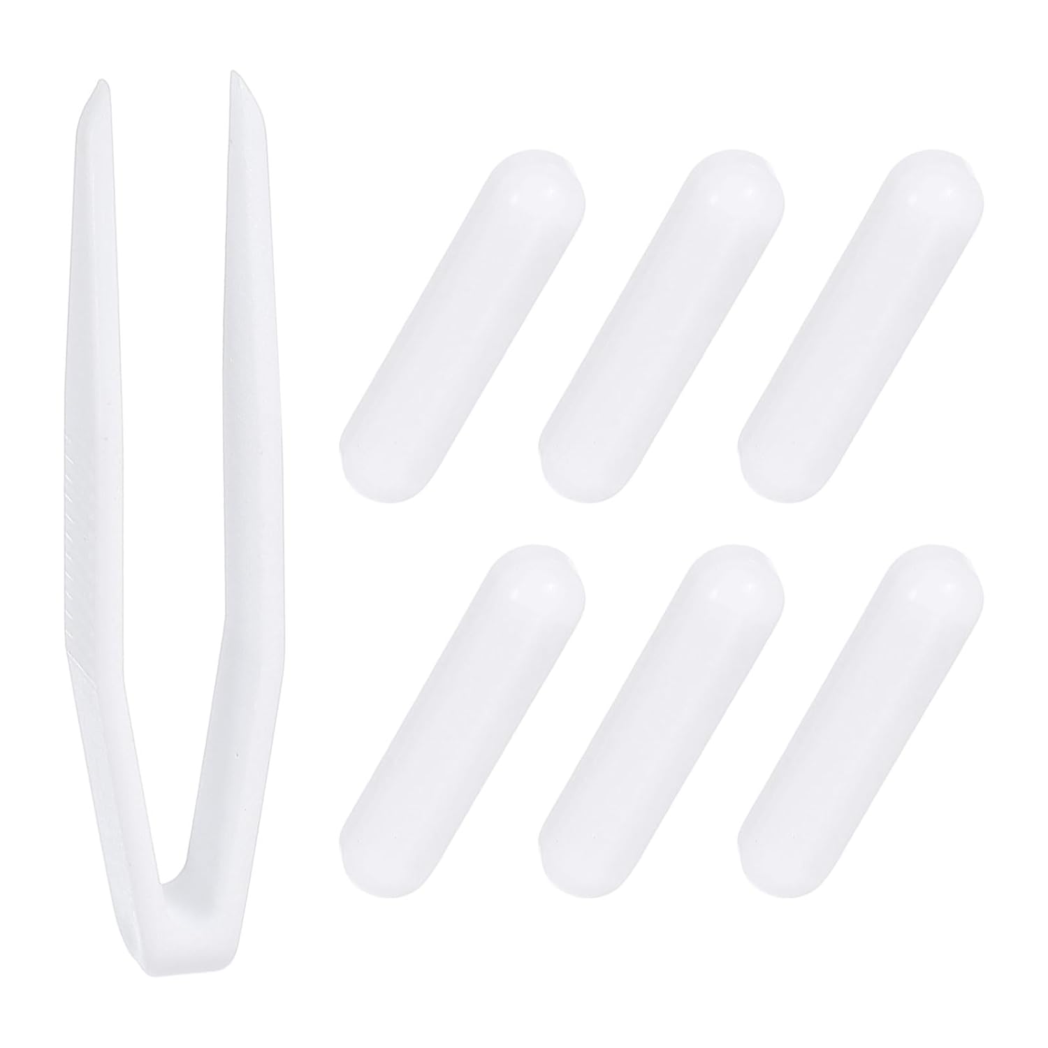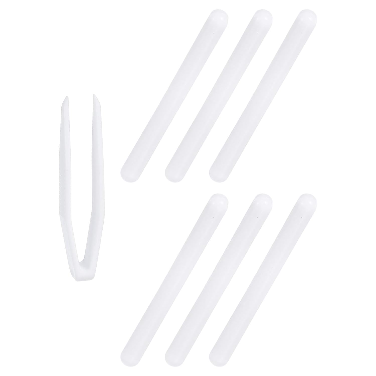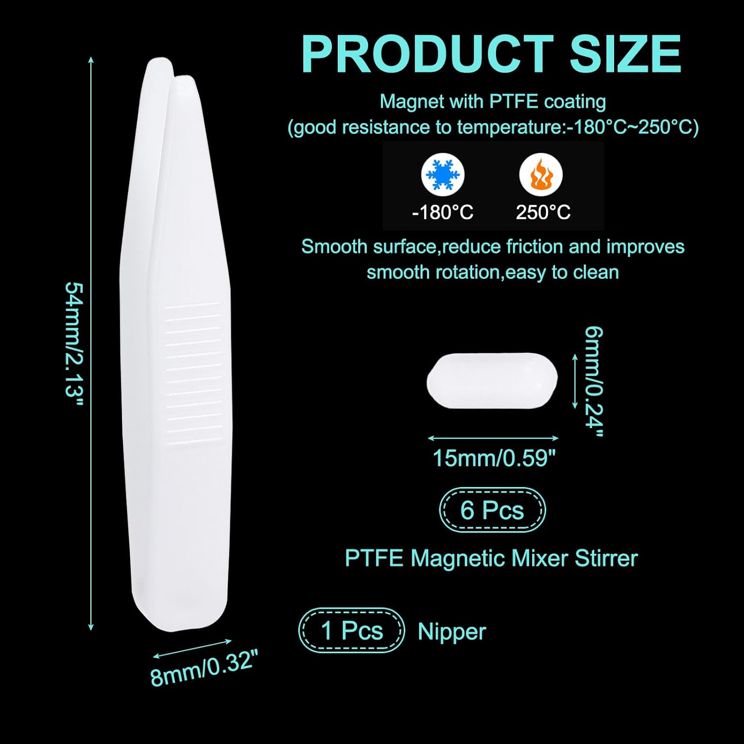 With excellent chemical and high temperature resistance, low coefficient of friction, widely used in laboratories like chemistry, and biology, performing chemical synthesis experiments like neutralization, mixing, etc., it ensures uniform mixing of liquids and avoids sedimentation and stratification. PTFE magnetic stirrers also provide stable and reliable stirring during sample pre-treatment, pH calibration and other analytical testing.SpecificationMaterial: PTEF, magnetsColor: WhiteStyle: Type-CSize: 15x6mm/0.59x0.24inch(LxW)Nipper Size: 54x8mm/2.13x0.32(LxW)Package Includes: PTFE Magnetic Mixer Stirrer x 6, Nipper x 1AdvantagePTEF material shows inertness to strong acids, ensuring stable operation in extreme chemical environmentsSmooth surface and low coefficient of friction, with quality magnets, it operates smoothly in liquids, efficiently realize liquid mixing and reduce energy loss.We offer different shapes of stirrers for test tubes, beakers, reactors and other experimental vessels to meet different experimental needs.InstructionMake sure that the stirrer specification suits the mixer and container, place the stirrer gently into the container to ensure that it is completely soaked but not touching the bottom or side.After used, remove the stirrer, use appropriate cleaning agent to clean and dry after proper storage, avoid contact with other hard objects or collision.NOTEWear protection when using to prevent chemical spills.Avoid using the stirrer on the bottom of hard or uneven containers to prevent scratching and damaged.Regularly check the magnetic strength and surface integrity of the stirrer and replace the stirrer if it is worn or scratched.