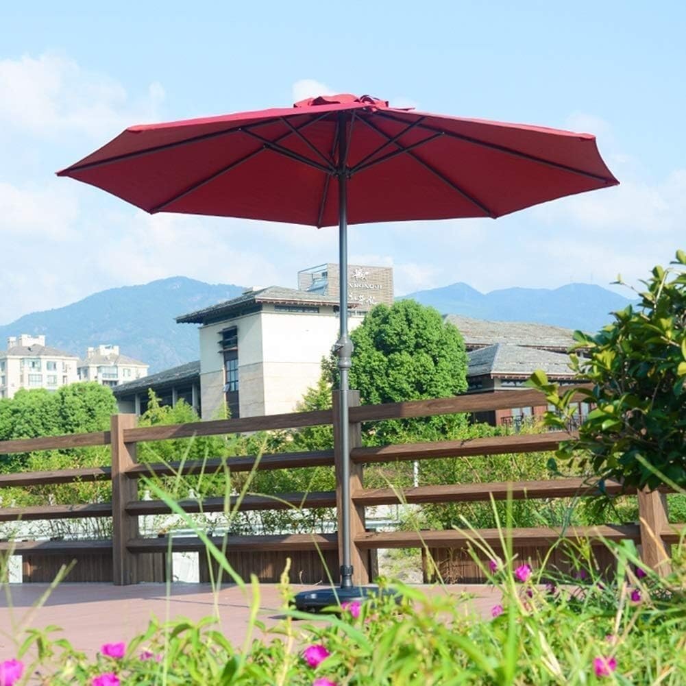 Overview:- Umbrella Type: Market umbrella- Size: 9ft 270cm- Canopy Shape: Round- Pole: iron, Dia.1.50 inch (38 mm)- Umbrella cloth: UV resistant polyester fabricWaterproof- Open method: Manual- Air vent: Yes. It provides basic wind and heat venting- CommercialResidential: BothTips:*Please close the umbrella when you do not use in bad weather so that the umbrella will have a longer performance.How to clean :Brush off loose dirt.Spray on a cleaning solution of water and mild soap.Use a soft bristle brush to clean.Allow cleaning solution to soak into the fabric.Rinse thoroughly until all soap residue is removed.Air dry.Package Includes:1x Outdoor umbrellas