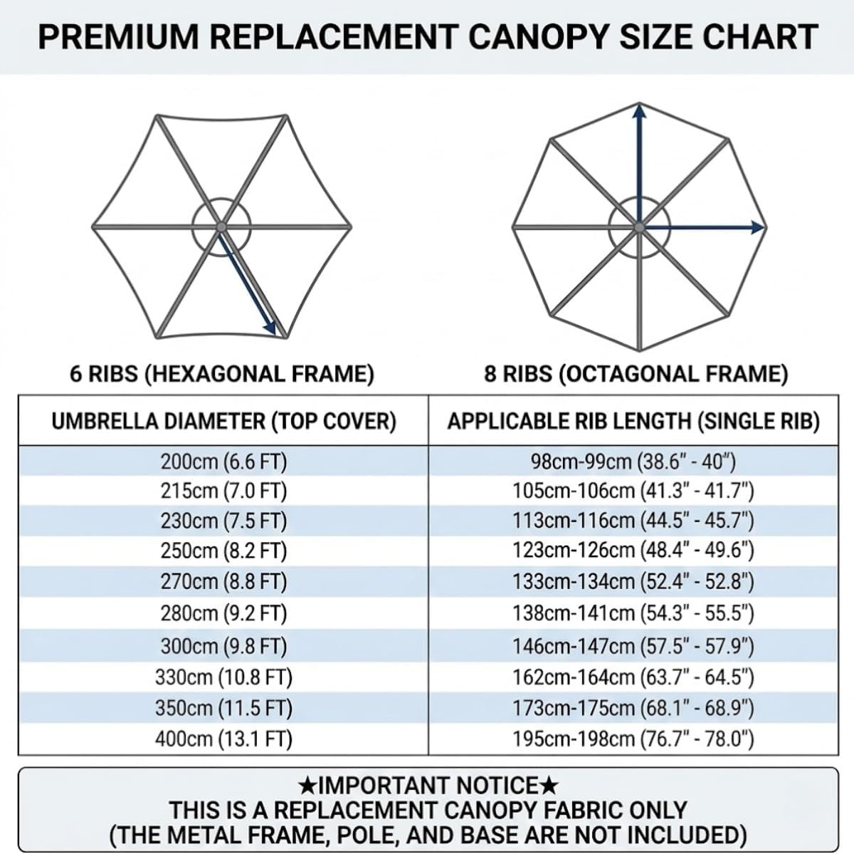 • Patio Umbrella Replacement Top: Constructed to deliver long lasting performance in changing weather. This replacement parasol fabric cover features sturdy stitching to ensure your outdoor table market yard umbrella replacement stays secure
