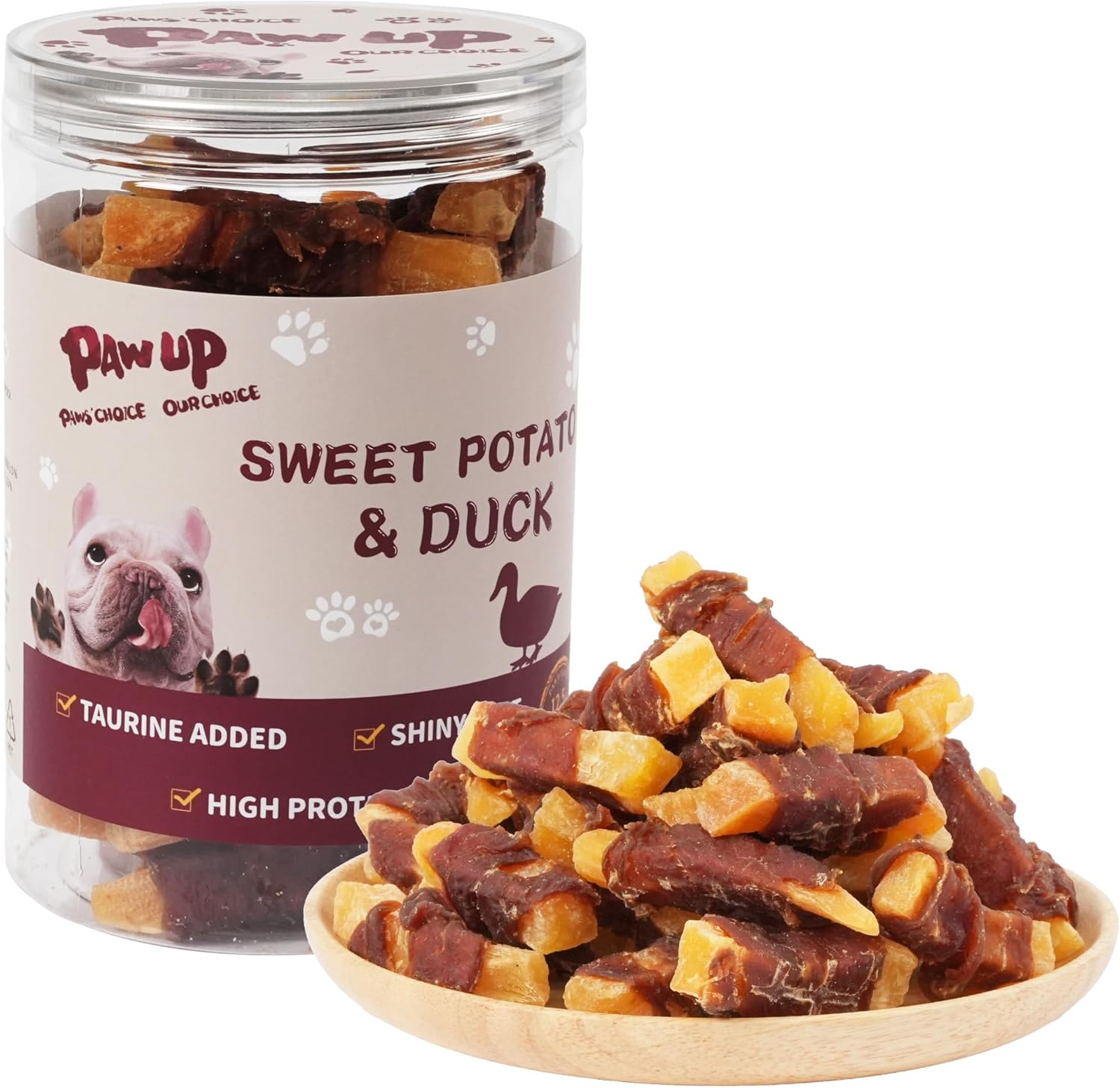 PAWUP is a brand that processes high-quality premium nutritious pet treats, has many years of treats processing experience. PAWUP provides the highest quality products in strict compliance with local food safety standards. We provide high-quality products that serve all consumers in the United States and Europe. All products are composed of 100% pure natural raw materials, we also carry out a series of rigorous testing after processing into the product. We always maintain our high standards for products. Composition Sweet Potato 54% Chicken 35% Vegetable glycerin 3% Peanut Protein 3% Tapioca Starch 2% Sorbitol 2% Taurine 1% Guaranteed Analysis moisture:≤21% ash:≤3.5% protein:≥18% fat:≤2.4% fiber:≤1.4%