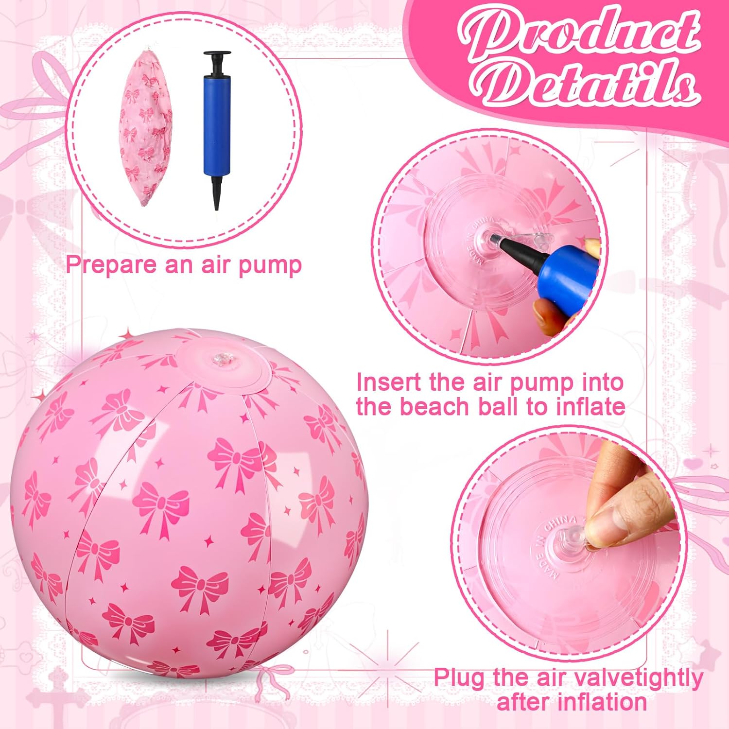• Durable PVC Material: made from PVC material, these pink bow beach balls are designed to handle frequent summer use in various outdoor settings; The surface is smooth and easy to wipe clean; Note: extended exposure to direct sunlight may affect durability, so storing them properly helps maintain quality