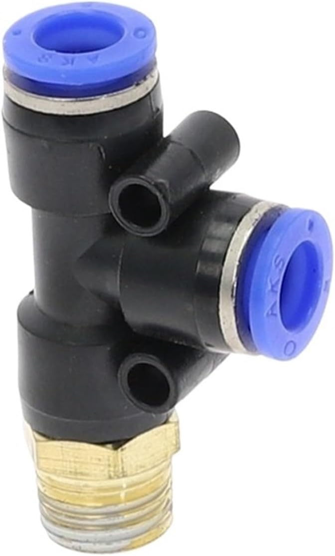 Tee Fittings1/8"BSP(DN6) Male Thread OD9.5mm1/4"BSP(DN8) Male Thread OD12.5mm3/8"BSP(DN10) Male Thread OD16mm1/2"BSP(DN15) Male Thread OD20mmSpecification:Male Thread Size: M5*0.8,1/8",1/4",3/8",1/2"BSPMale Thread OD: 5mm,9.5mm,12mm,16mm,20mmPipe Outer Diameter: 4mm,6mm,8mm 10mm,12mmOD HoseOperating Pressure: 0~10.2kgf/cm2 (0~1.0Mpa)Negative Pressure: -750mmhg (10 Torr)Operating Temperature Range: 0~60CFit For Tube Material: PU / Nylon ,PolyurethaneQuick Fitting Material: Brass & PlasticQuick Fitting Color SilverBlueBlackPackage Content 1 PC Quick Fitting