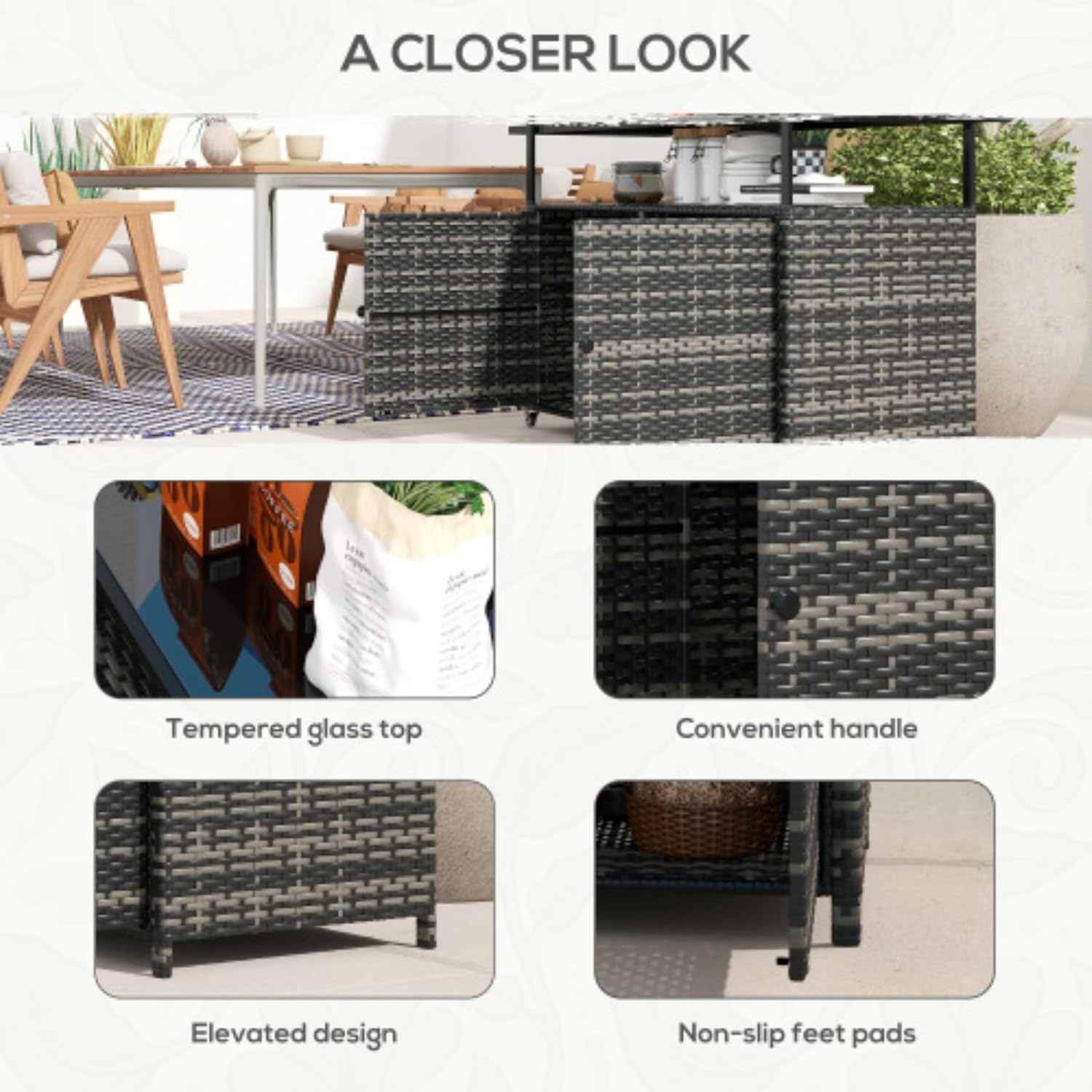 Our outdoor sectional furniture set is made with handwoven PE rattan, a material with all the tropical style of classic wicker. Also, a water-safe powder-coated steel frame reinforces the sofa, allowing for a high weight capacity. Product Information Product Type:General Item Product Name:PE Rattan Outdoor Bar Table Main Color:Gray Main Material:Steel Product Dimensions Assembled Length (in.):51.25 Assembled Width (in.):19.75 Assembled Height (in.):35.50 Weight (lbs.):51.70