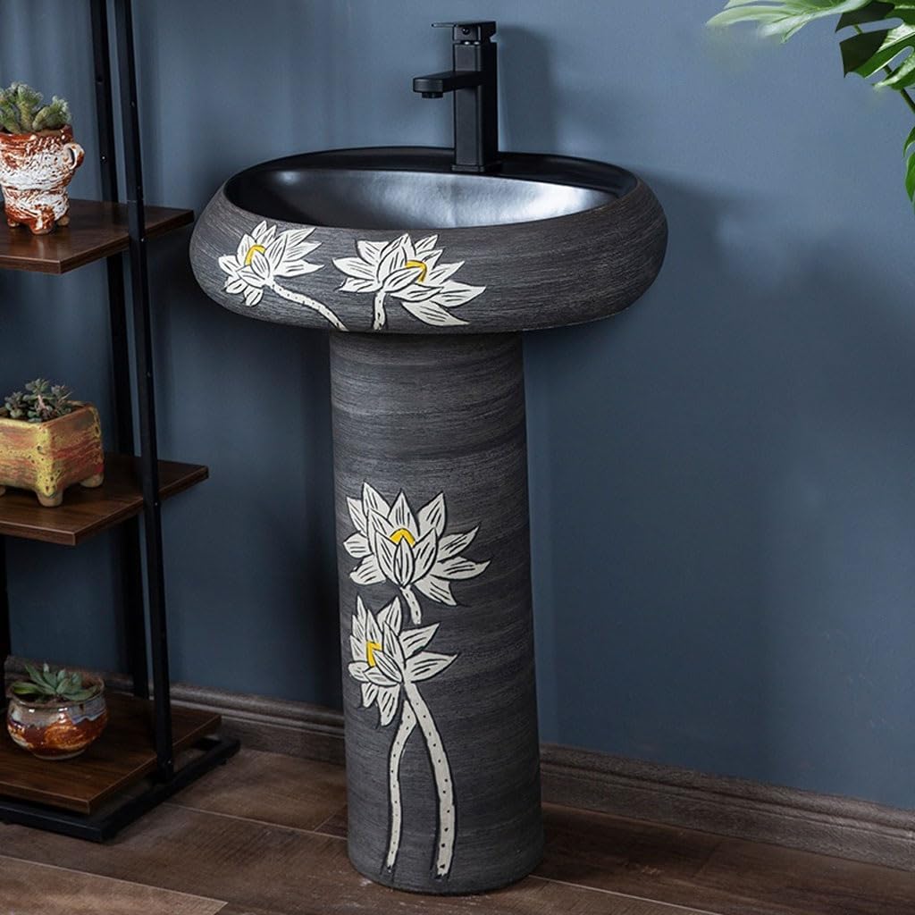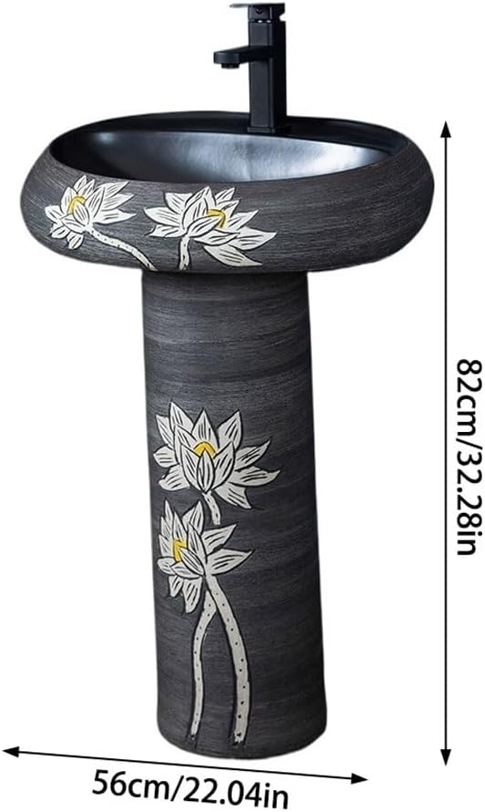 This pedestal sink is a perfect addition to home bathrooms, courtyards, parks, hotels, shopping malls and other commercial environments. Product name: Pedestal sink Product material: Ceramic Product size: 56cm/22.04inX82cm/32.28in Product packaging: Contains 1 + faucet Notes: Please confirm the product size color before purchasing Items than main products shown in picture are for demonstration purposes only not included. Due differences light, display personal color, there may be between actual photo, please refer product. The above data reference only. The manually measured will an error of 0-2cm. Please product, thank you.