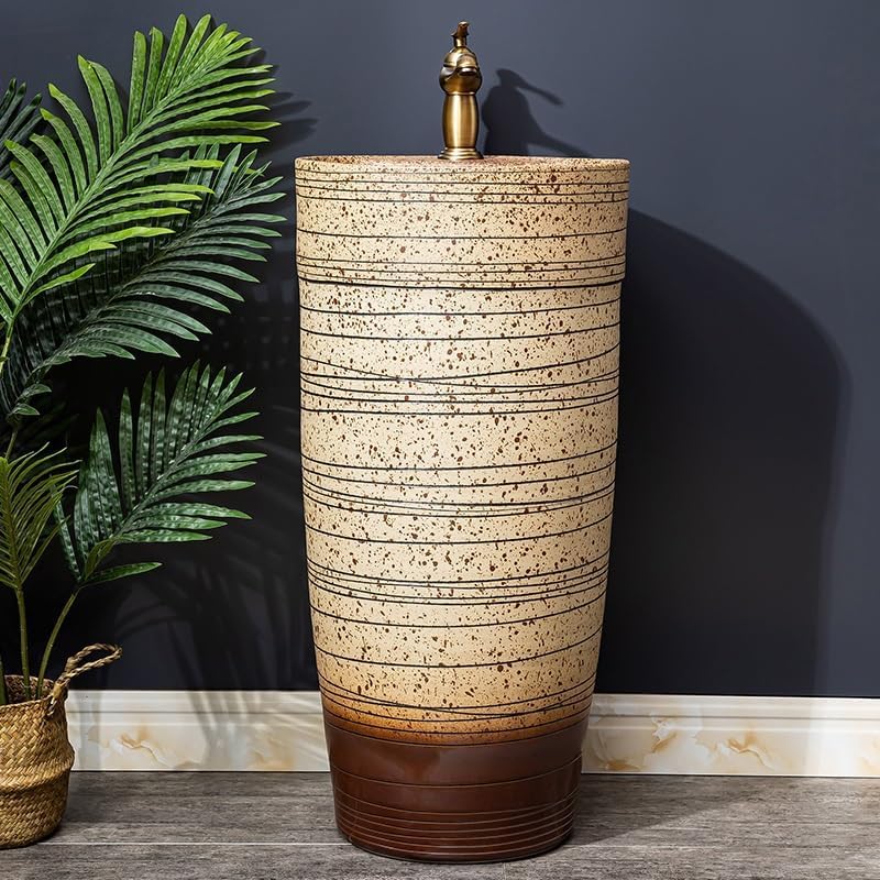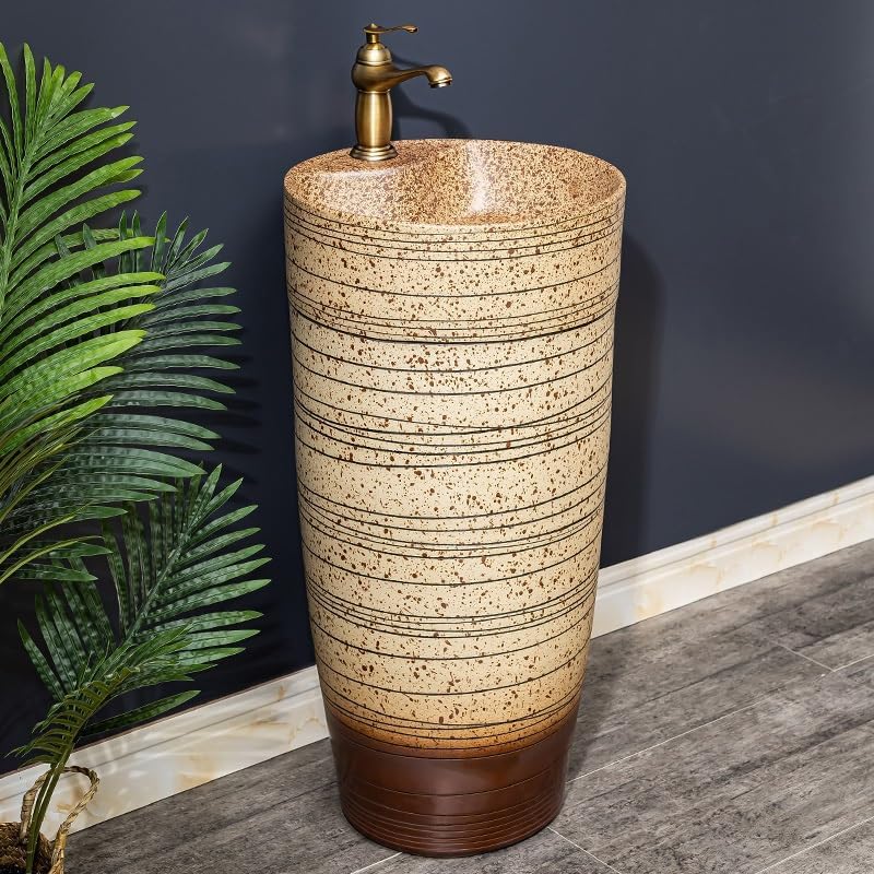This pedestal sink is a perfect addition to home bathrooms, courtyards, parks, hotels, shopping malls and other commercial environments. Product name: Pedestal sink Product material: Ceramic Product includes: sink*1+faucet*1 Note: Except for the main products shown in picture, are demonstration purposes only do not include products. Due lighting, display, personal color, etc., there may be color difference between real object photo. Please refer actual product. The above data reference only. The size manually measured will 0-5cm error. product. Thank you.