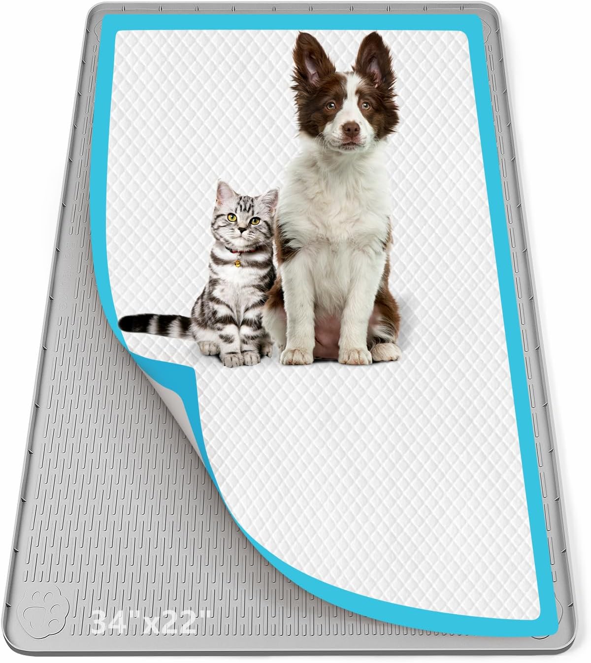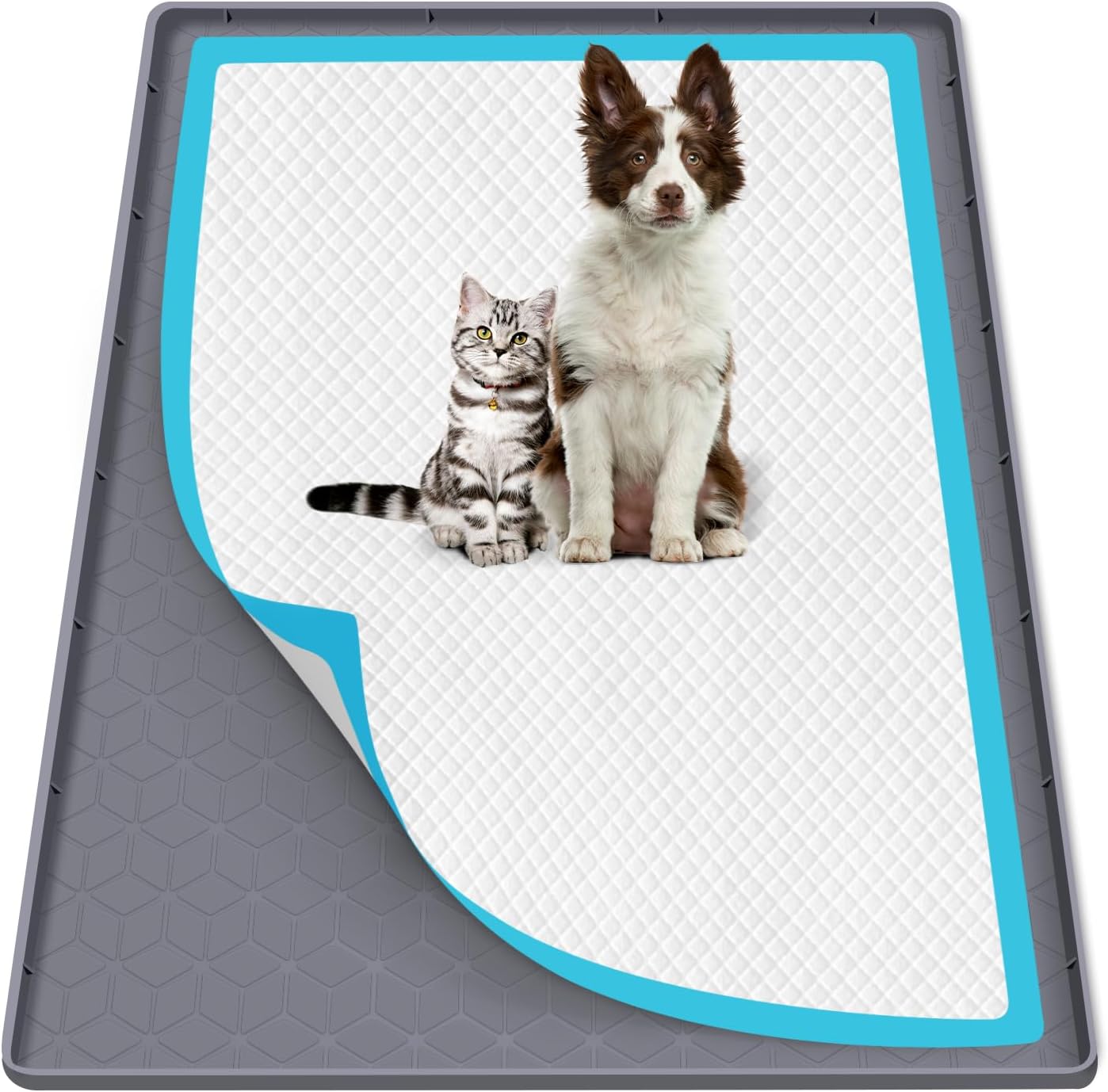 Pee Pad Holder for Dogs, 40" x 28" Silicone Pee Tray Mat Leak-Proof, High Edge, No Spill Pet Pad Holder for Puppy, Cat, Rabbit, Dog Training Pads for Home Floor Protection (Grey)