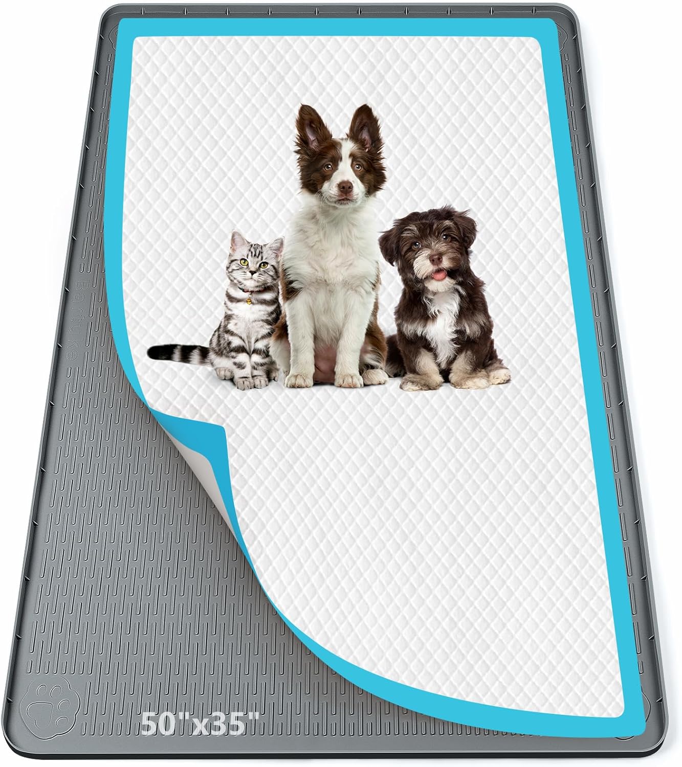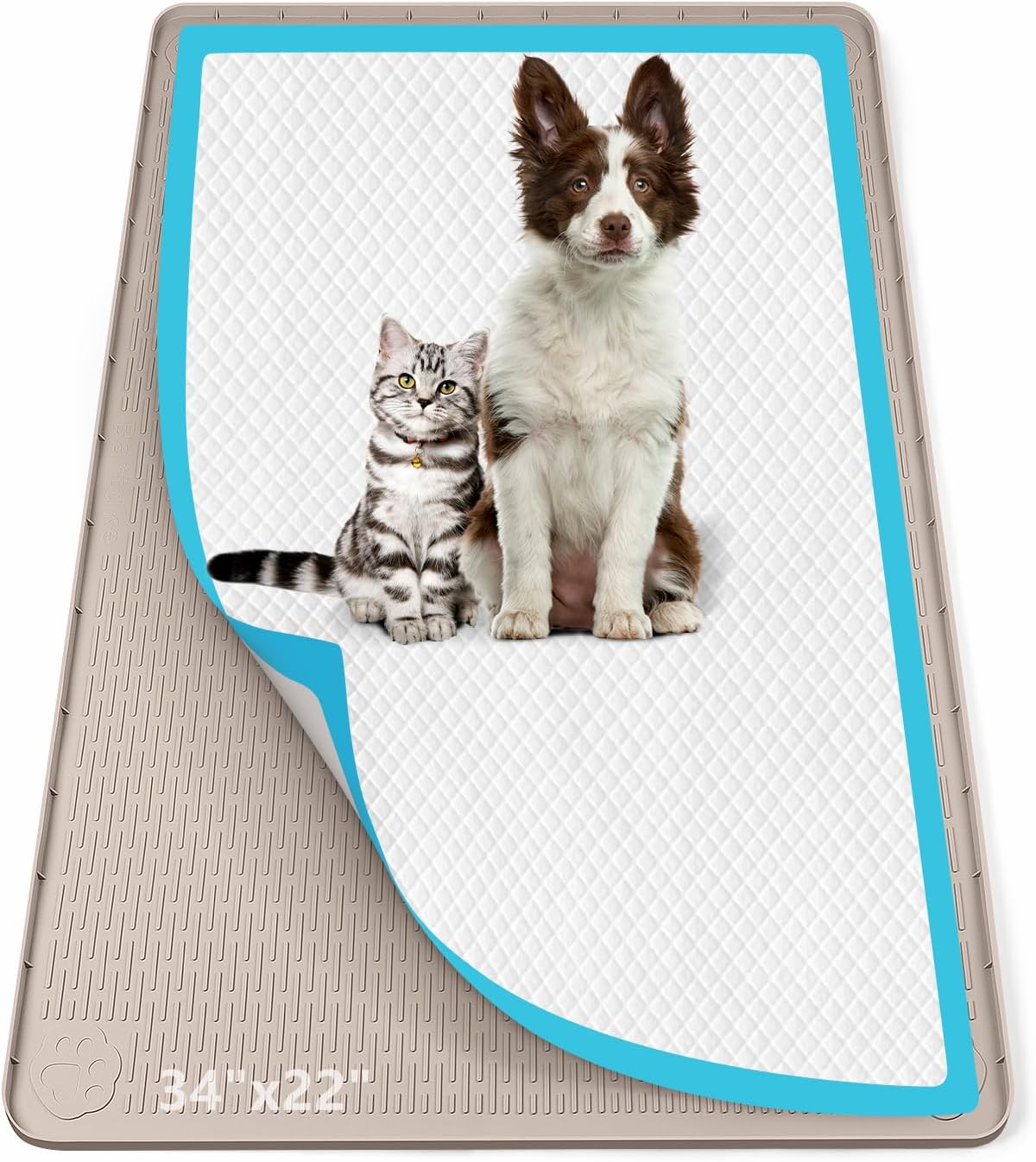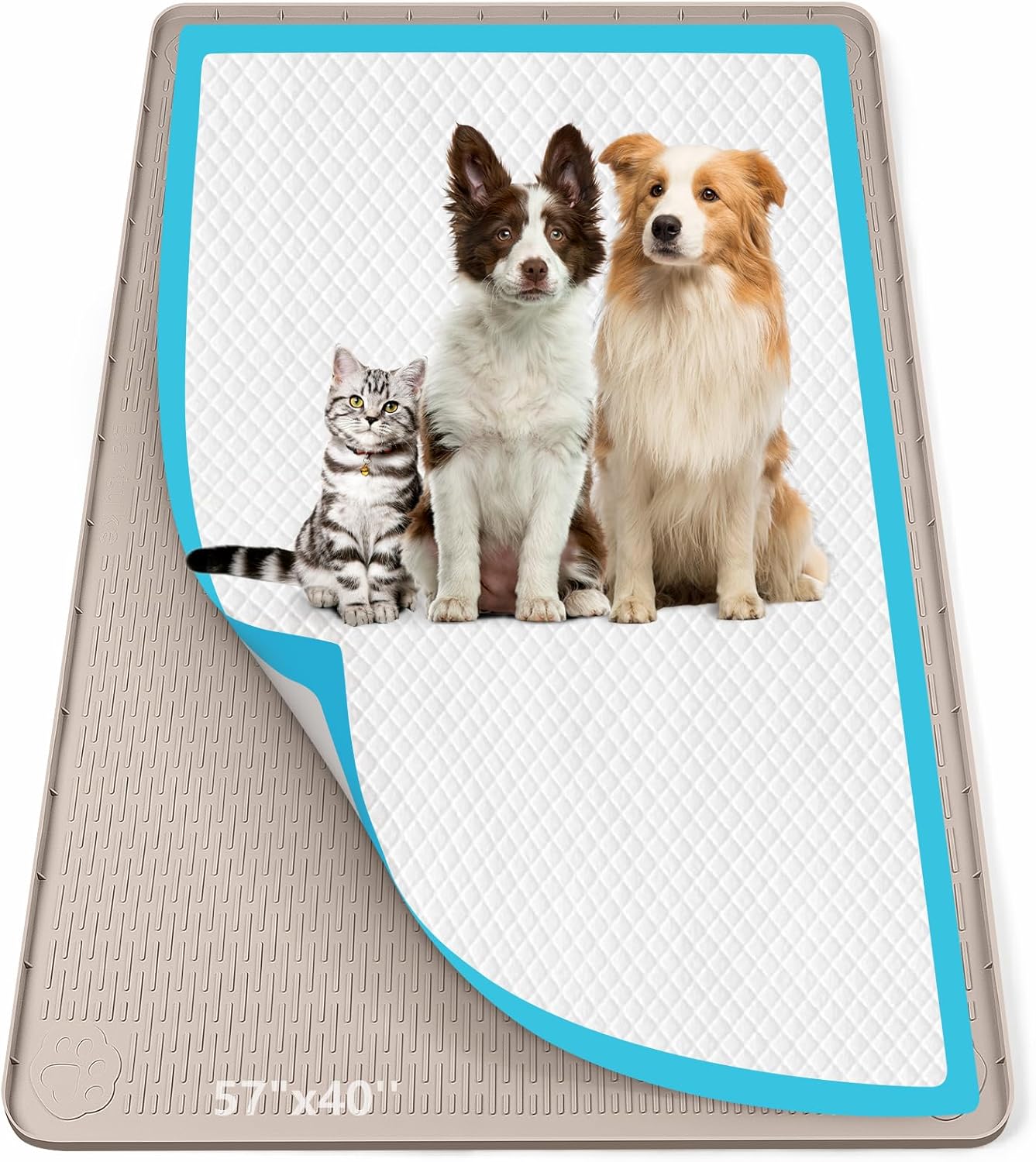 • Secure Pee Pad Placement & Floor Protection: This pee pad holder keeps the pet’s pee pads firmly in place with its non-slip silicone surface, preventing shifting or bunching during use. The 40" x 28" (101cm x 71cm) large size fits most standard pads, while the raised edge contains leaks and splatters, protecting hardwood, tile, and carpet —ideal for the dog pee pad holder needs of messy puppies or senior dogs.