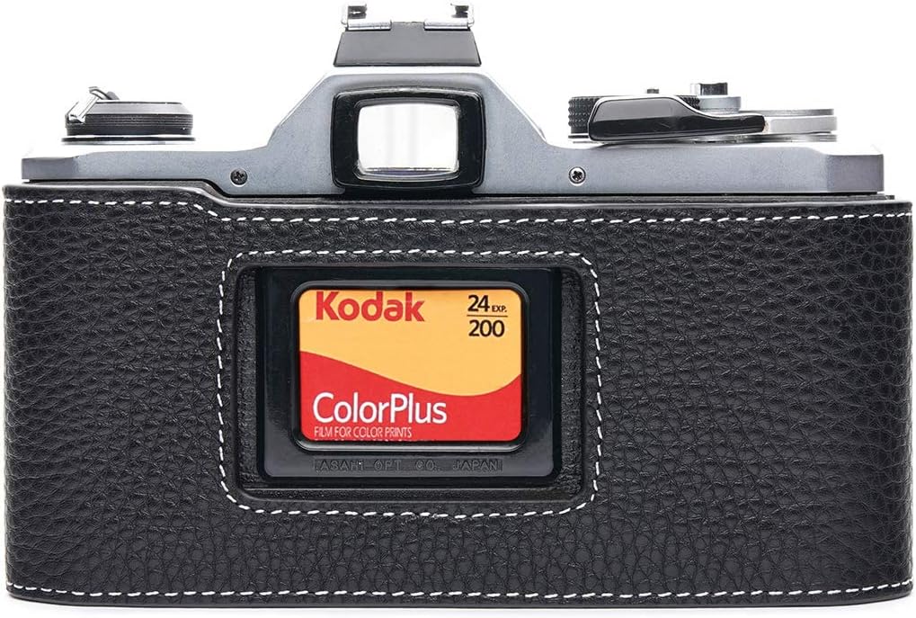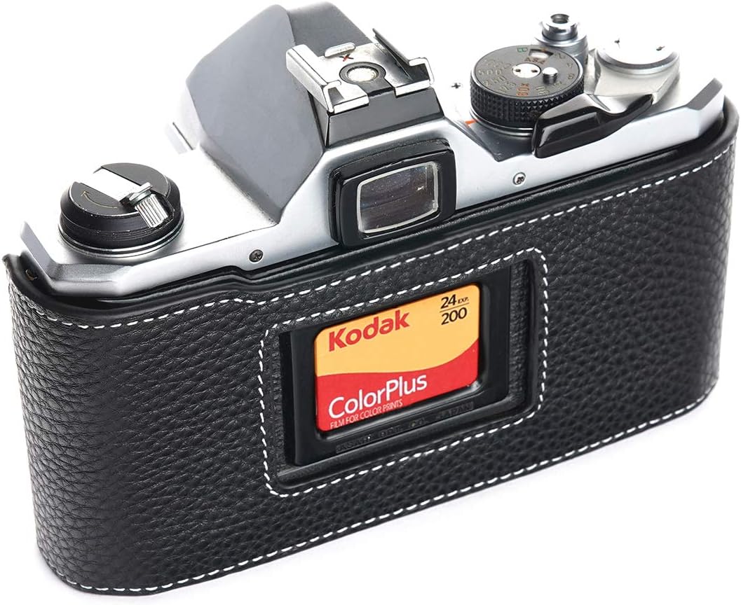 This camera is made by real top layer oil leather, the design is simple and vintage, use Metal sizing techniques make it very fit with the camera body. Inside lining use high lever velvet to protect camera body for scratch and coloration. Under base screw is made by copper and it can easy take off by coin. You don't need to take off the half case when you use tripod. It has a special design for Pentax MX ME Camera which makes it easy to turn over the Screen and it will totally not affect screen rotation. You don't need to take off the half case when you connect data lines. Content: 1 x camera half case, 1 x Free Genuine Real Leather Hand Strap, camera not included. Material:Genuine leather.