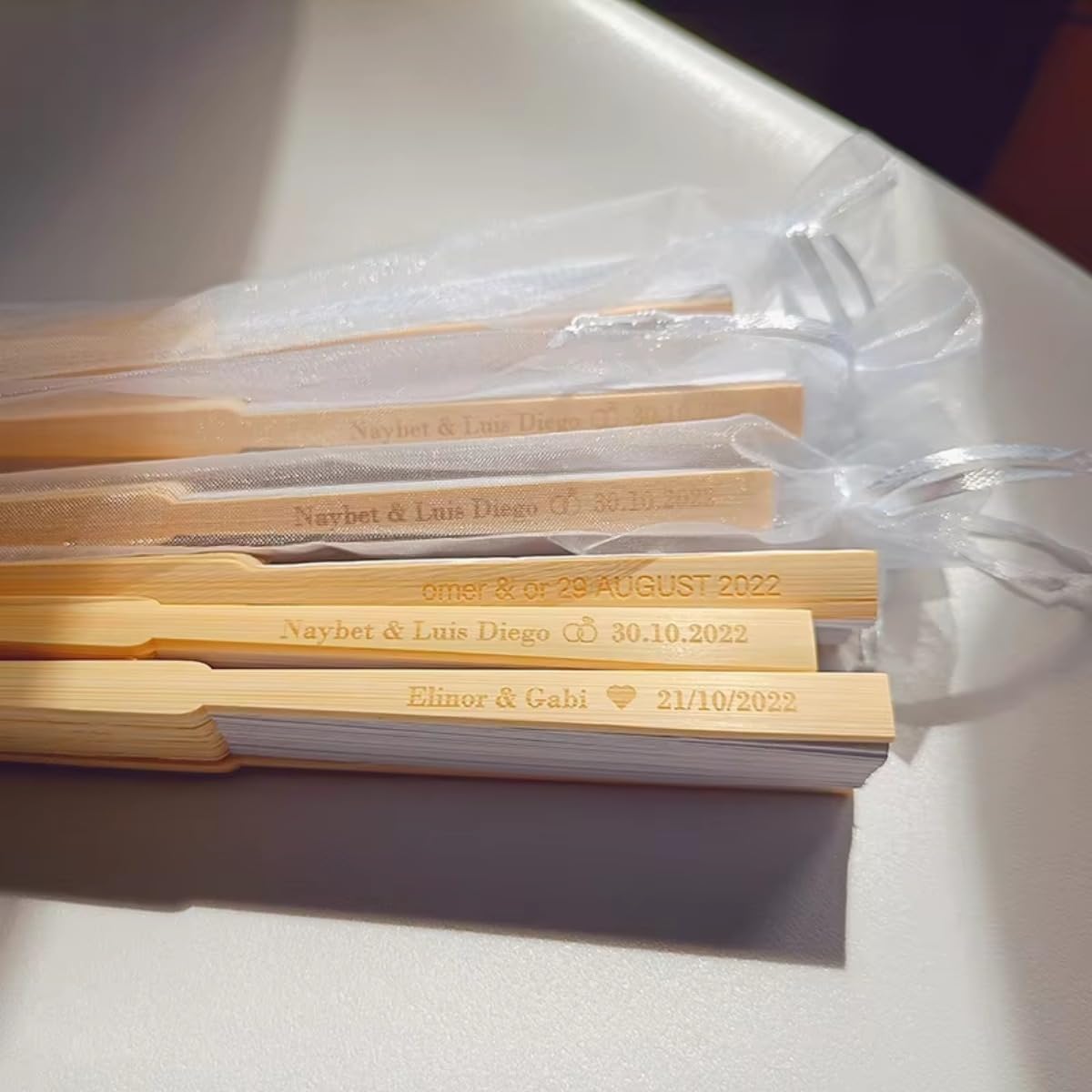 Material: Bamboo and Silk Color: A variety of colors for you to choose from, suitable for various occasions. Features: 1.Designed with versatility in mind, this fan can be used for a variety of purposes. Whether you are planning for a wedding, baptism, birthday party, or even Thanksgiving, it will fit in perfectly with any theme. Beautifully packaged in a charming organza bag, it is an ideal giveaway for guests or a thoughtful gift for a loved one. The exquisite design and handcrafted quality ensure that each fan stands out and adds a personal touch to your event. 2.These wedding fans can be handed out as favors to your guests during the wedding or reception. They can also be incorporated into events such as bridal shower, bachelorette party, or used as a beautiful decoration in your home. 3.Easy to Carry: Lightweight and foldable, very convenient, easy to open and close, and also fits in a small handbag, so it is easy to carry around. Notes: 1. Due to the different monitor and light effect, the actual color of the item might be slightly different from the color showed on the pictures. 2. Please allow 1-3cm measuring deviation due to manual measurement.