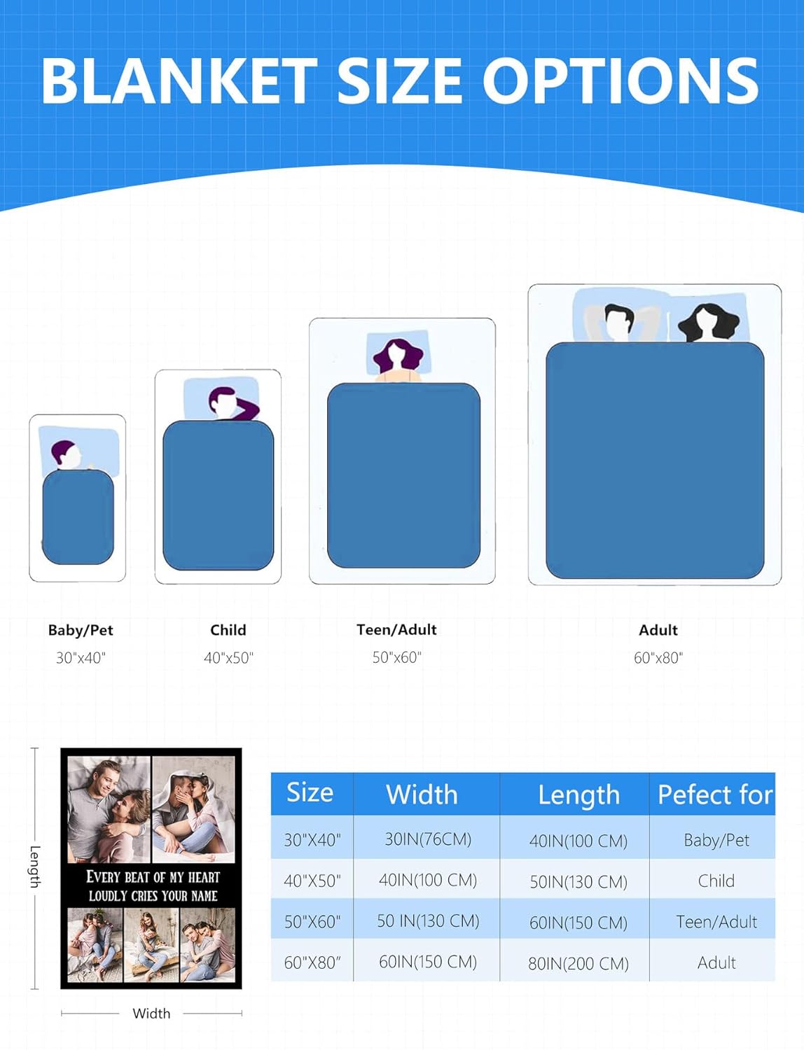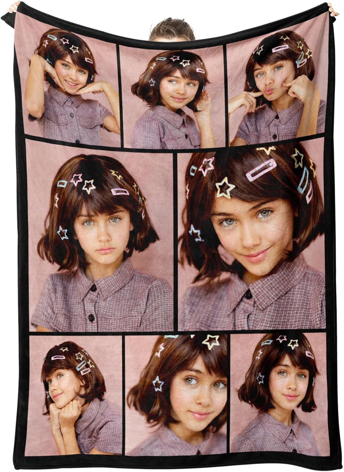• CUSTOM BLANKET: Custom Blankets with Photos and Text. Click "Customize Now" to upload photos of family, friends or pets. We will turn your warm memories into a unique blanket.