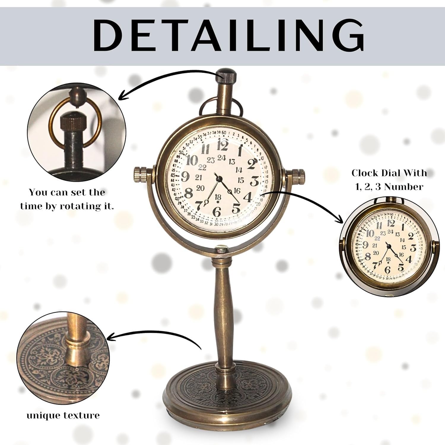 Add a touch of vintage elegance to any desk or workspace with this exquisite antique bronze desk clock. Featuring a classic design with a rotating stand, this timepiece combines functionality with decorative appeal. The clock face displays clear, easy-to-read numbers in a traditional style, while the ornate base adds a sophisticated touch. What makes this clock truly special is the ability to personalize it with your own custom engraved message, making it perfect for anniversaries, retirements, or any meaningful occasion. The rotating mechanism allows for easy adjustment of the viewing angle, while the sturdy construction ensures lasting durability. The antique bronze finish creates a timeless look that complements both traditional and contemporary decor. Standing proudly on its decorative base, this clock serves as both a practical timekeeper and a cherished keepsake that will be treasured for years to come.