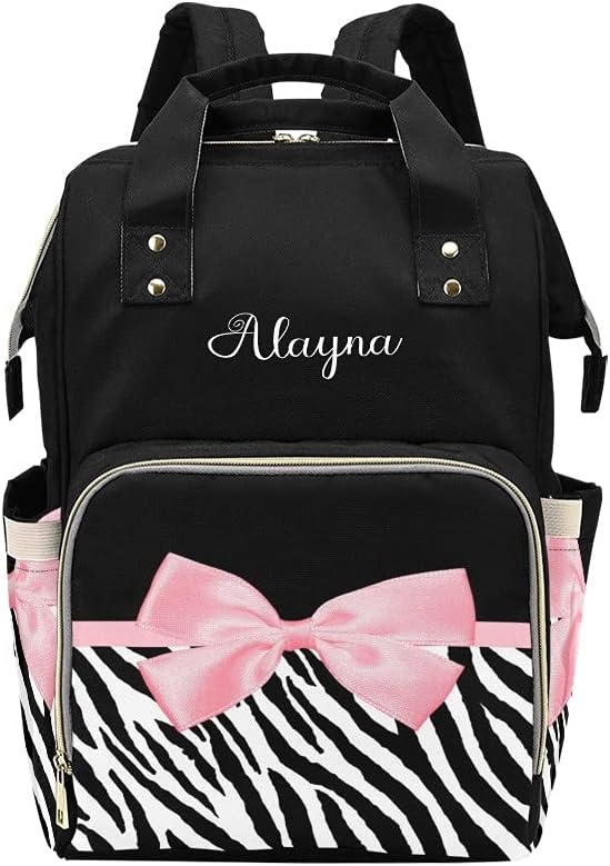 Structure:♥ One main compartment and some seperate pockets inside provide enough space.♥ Front compartment includes 3 seperate insulated pockets that can hold milk bottles. ♥ A mesh pocket featured.Specification:♥ Item Name: Personalized Name Backpack Diaper Bags♥ Size: 10.83 L x 6.69 W x 15 H inches♥ Outside Material: Nylon Fabric♥ Inside Material: Cationic Polyester♥ Weight: 24.34 oz♥ Color: Multicolor♥ Style: Casual & Fashionable♥ Opening Method: Zipper