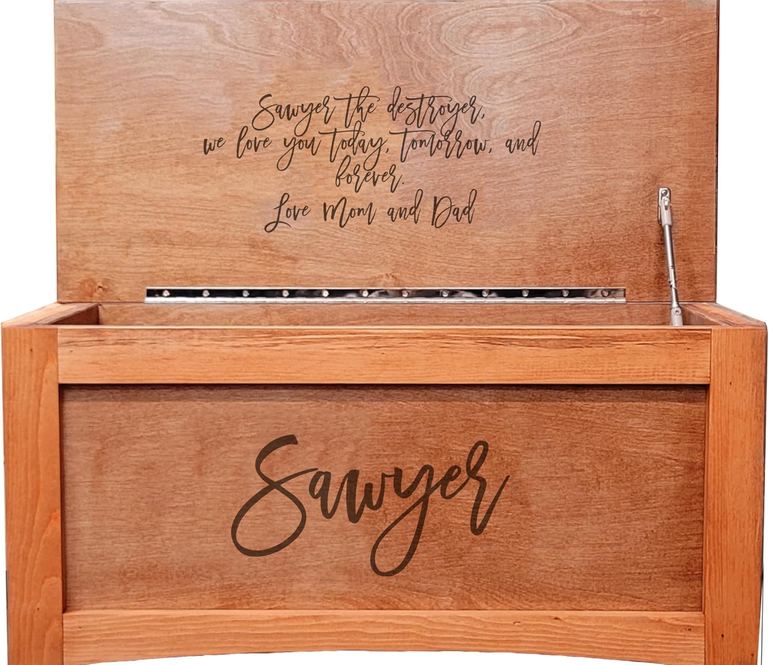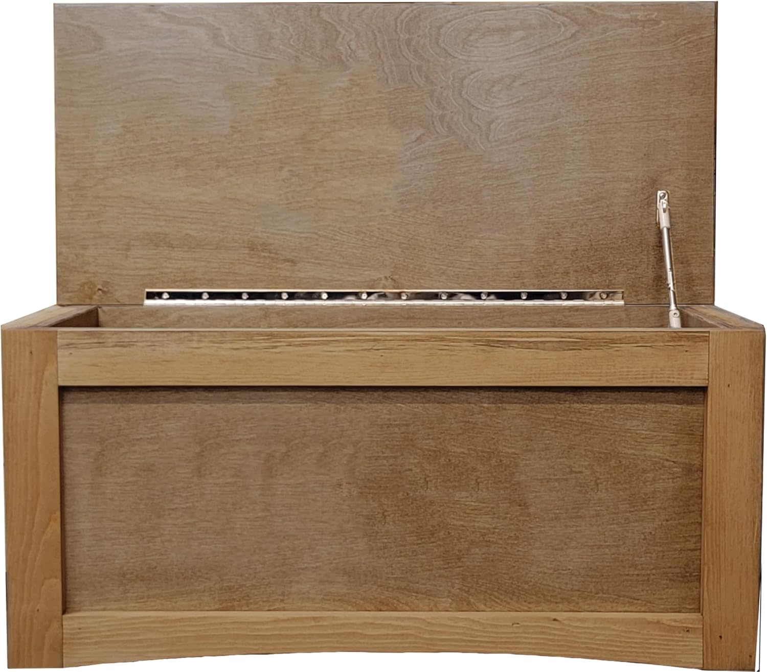 Remember when things were made to last a lifetime? This wooden toybox is one of those. I have 5 children and I know how hard kids can be on furniture. I designed this toy box to take a lot of abuse. These toy boxes are Cabinet Grade construction. I do not use Fiberboard (MDF), Particle Board, Furniture Board, or any other type of flimsy construction material. I use 3/4" inch wood products for all components. The carcass is made from 3/4" cabinet-grade veneered plywood and then trimmed in solid wood. I use one long piano style (continuous) hinge to attach the top to the base as well as an added soft-close/stay-open safety hinge to protect little fingers. These toyboxes are constructed TOUGH (they weigh 45lbs) and shipped fully assembled. I build these with quality materials to last MANY years. This item is made to look semi-rustic. There will be variations in wood, knots, visible pin nail holes, and other small imperfections.