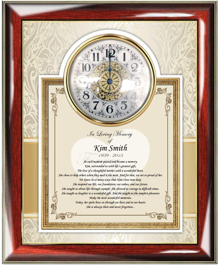 Memorial Sympathy Gift Frame Remembrance Bereavement Condolences Poem For Loss Of Loved One Sympathy Plaque Elegant custom sympathy poem clock frame condolences for loss family or friend gift as memorial. This sentimental bereavement present includes a comforting poem to show sympathy for a family member or friend who has loss for words over someone that has passed away. A must have memorial gift for every deserving mother, father, grandparents, or friend. Item SMEM-PGC1 After you place your order, email us through AchievementGifts (Amazon) or AllGiftFrames and let us know. 1. What is the First and Last Name of the Person? 2. Is the person Female or Male? 3. What are the Years? 4. Is the person mother, brother, grandpa, sister, father, etc...? Personalized Sympathy Poetry Gift Frame Plaque for Funeral and Memorial - Custom Bereavement and Condolence Poem Wall Clock Loss of a Loved One - Overall Size 14W X 16H - Item SMEM-PGC1