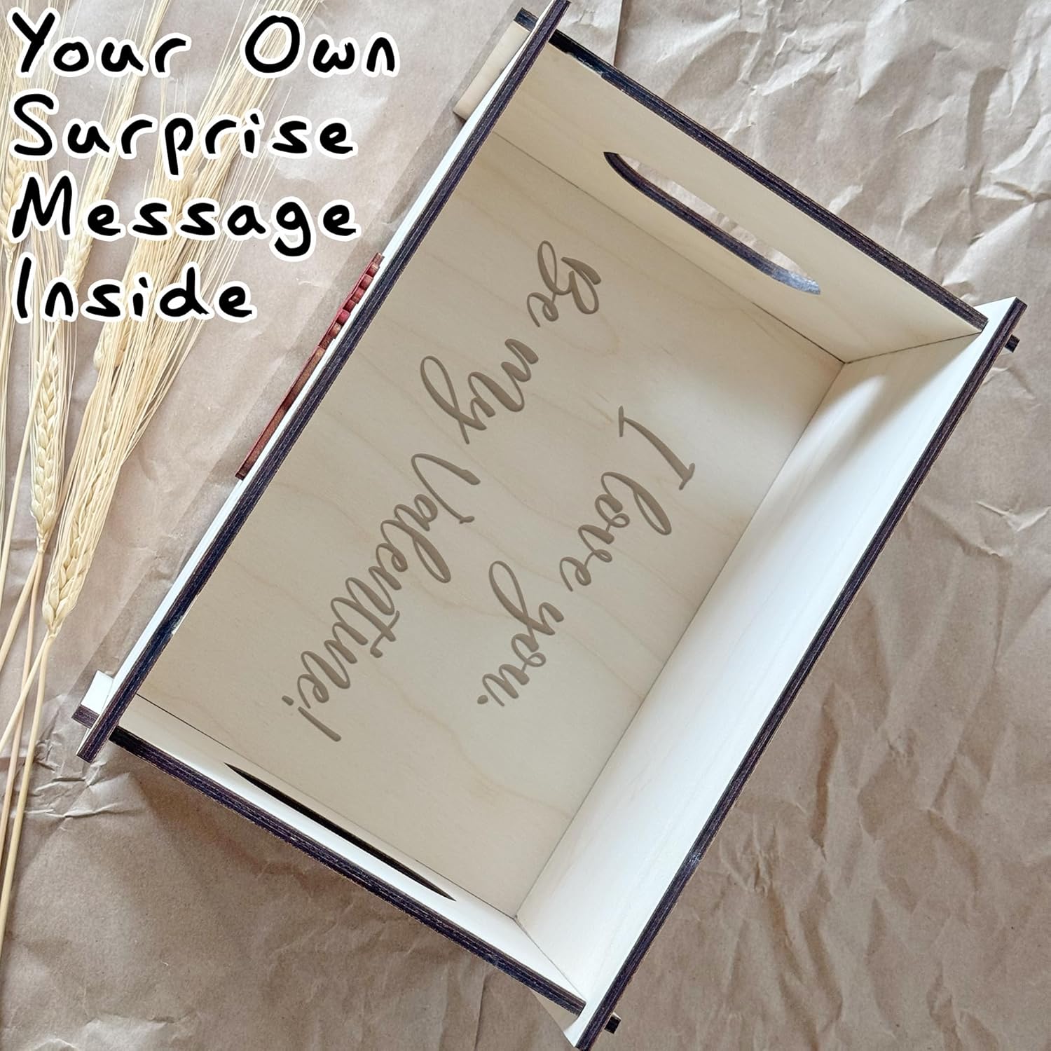 Make Valentine’s Day unforgettable with this personalized wooden Valentine’s Day gift box, beautifully designed to celebrate love in a unique and meaningful way. Customize it with your partner’s name — whether it’s your boyfriend, girlfriend, husband, wife, or a special friend — and add a heartfelt engraving such as “Will you be my Valentine?” or any romantic message that turns this box into a lasting keepsake. Every detail is crafted to make your Valentine’s gift stand out and feel truly personal. Crafted from premium 1/4-inch durable plywood, this large Valentine’s Day box measures 12" x 7.5" x 6", offering the perfect size for chocolates, candy, love letters, small gifts, or jewelry. Its unique 3D design with car and heart decorations adds a whimsical and charming touch that will make your presentation even more special. The flat-pack design allows for easy assembly and disassembly, making it simple to store and reuse for future holidays or romantic occasions. No need for wrapping paper — just place your gifts inside and create a memorable, reusable Valentine’s gift box that shows love, care, and creativity. Whether you’re planning a surprise for your sweetheart or looking for a custom Valentine’s gift box to present your thoughtful items, the Top Obsession personalized Valentine’s Day gift crate combines beauty, function, and sentiment. It’s not just a box — it’s a keepsake that celebrates love in every detail.