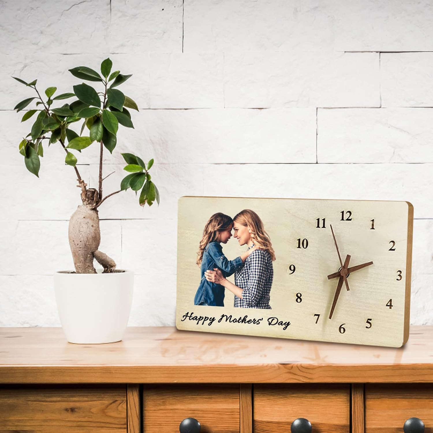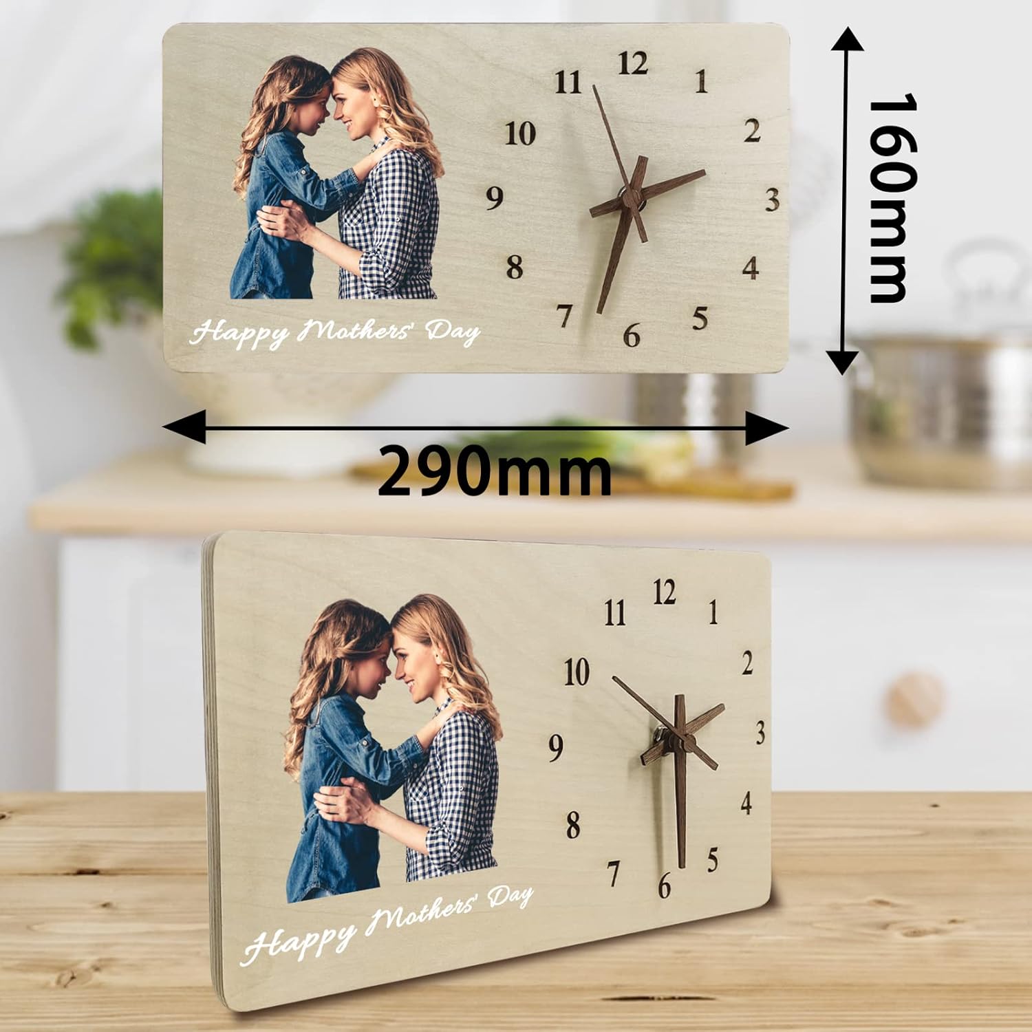 "Unique personalized wooden clock gift! Two Ways to Use: This custom clock can not only be placed on the table but can also be hung on the wall to meet your decorative needs!"