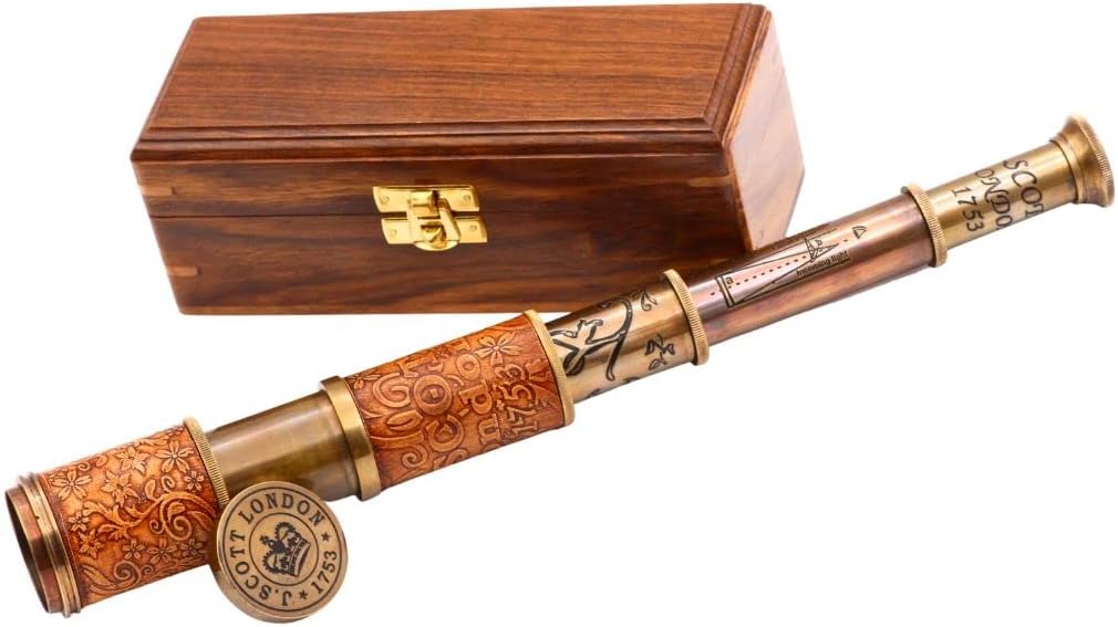 Solid Brass Telescope with wood box