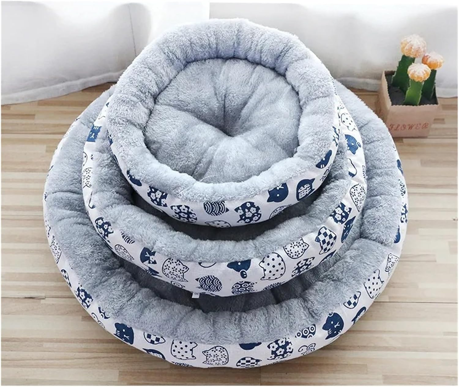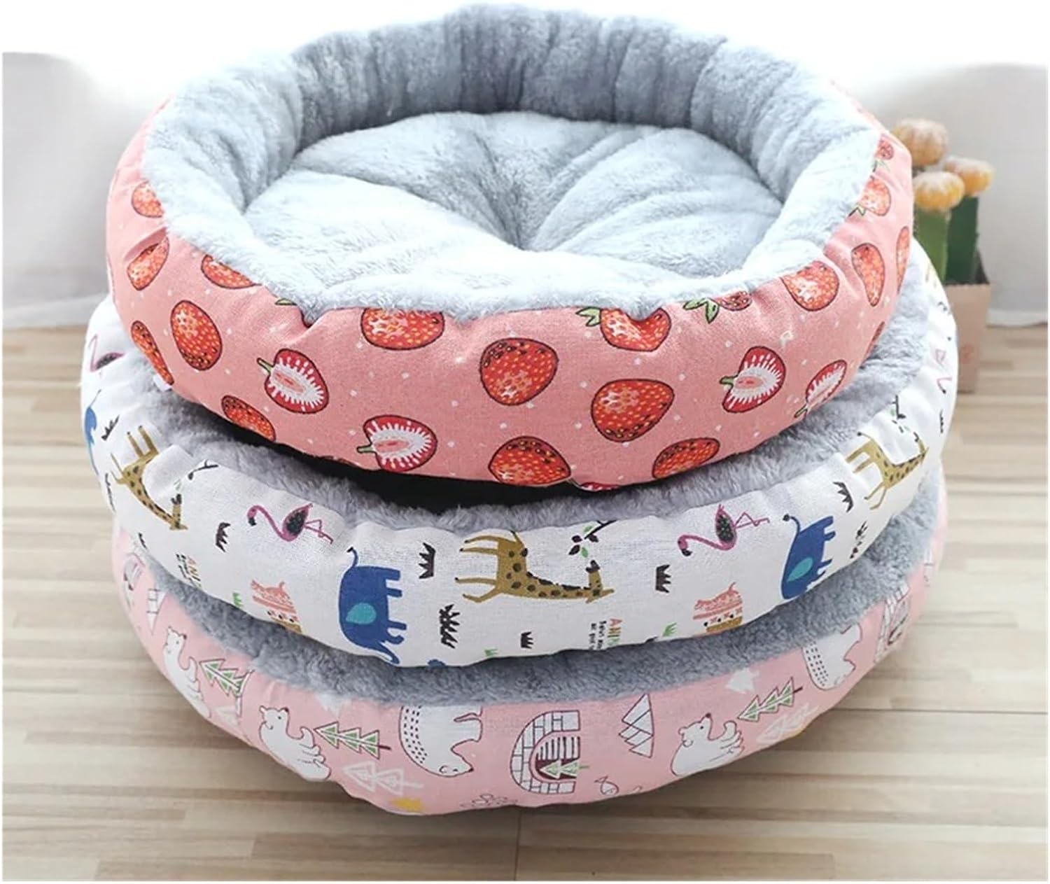 Product InformationSmall: Diameter 34CM Suitable pets within 2KGMedium: Diameter 45CM Suitable pets within 5KGLarge: Diameter 60CM Suitable pets within 15KGFabric: Fit For Arctic fleece, linen canvas, high resilience PP cottonIs Fit For Smart Device : noMaterial : Coral Fleece