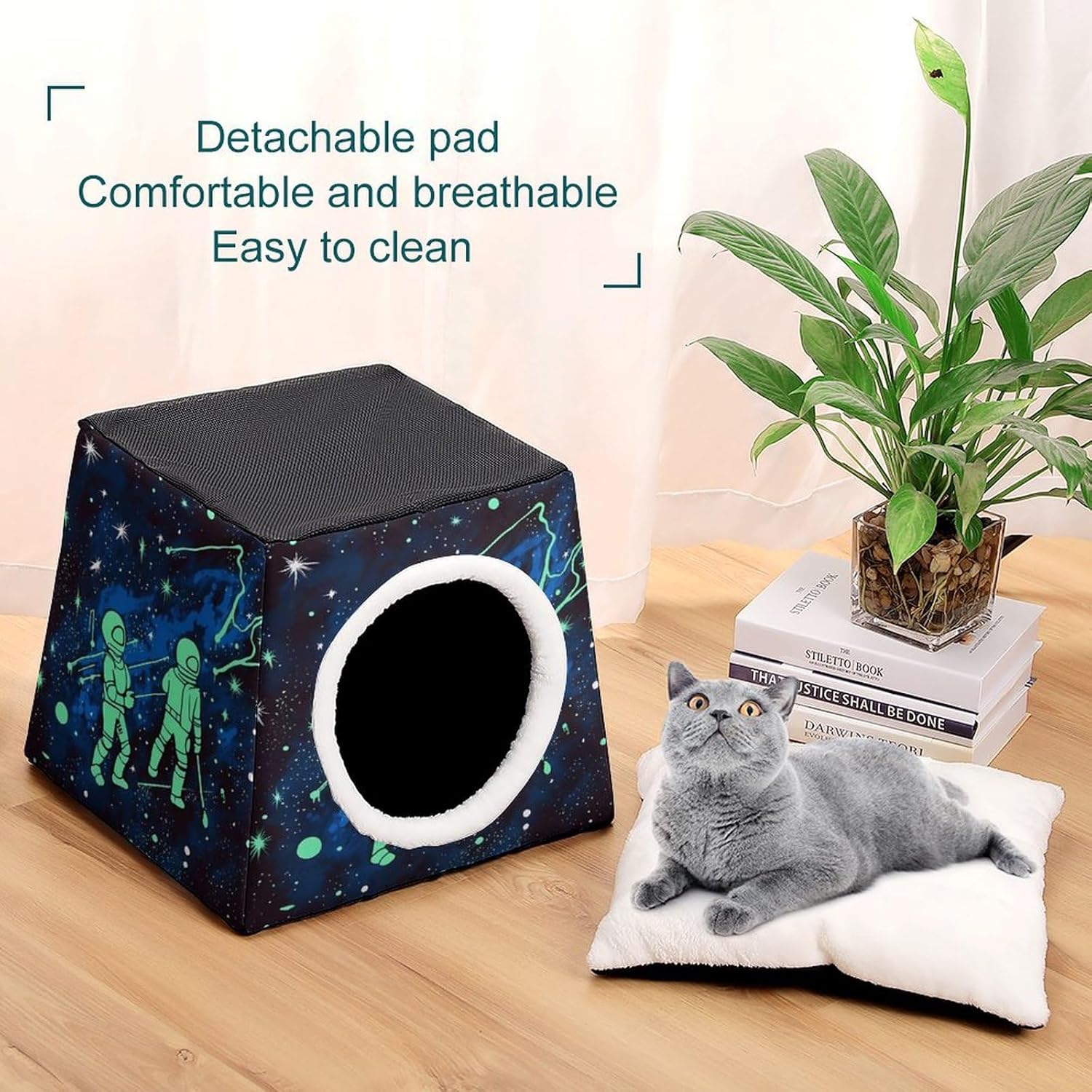 Portable Pet Nest Can Make Pets Sleep More Comfortably. Glow In The Dark printed Dog Cave Bed Can Also Serve As A Decorative Element In Homes. The Mats At Winter Pet House Are Soft And Comfortable. The Spacious Design Of Warm Pet Cave Provides Ample Room For Small Animals To Stretch