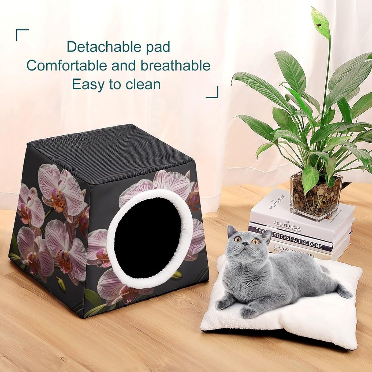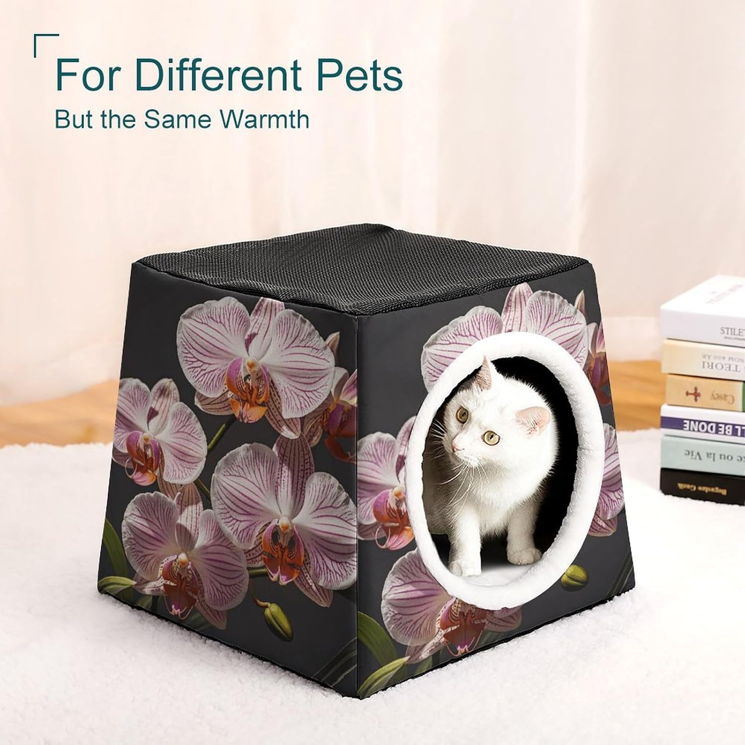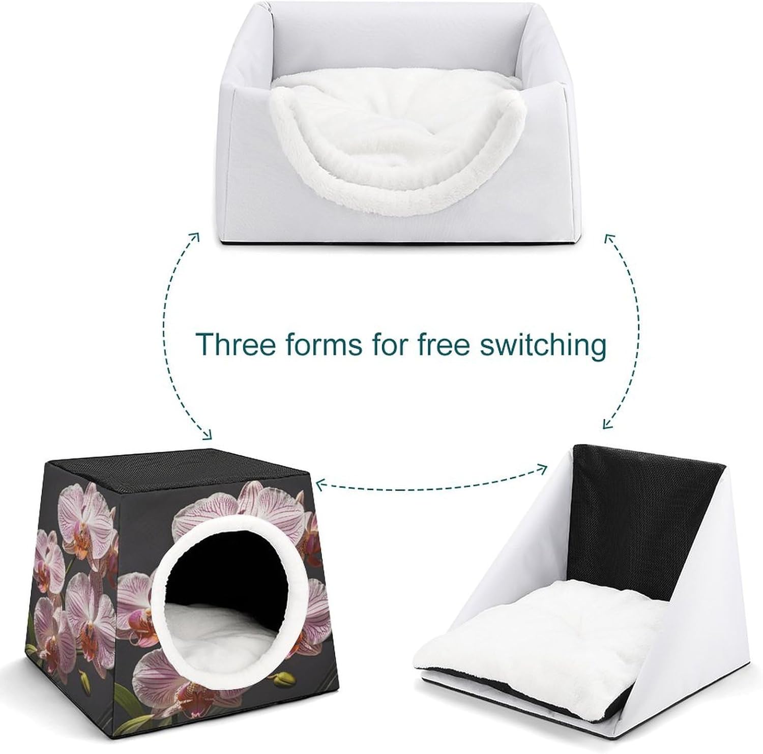 Portable Pet Nest Can Make Pets Sleep More Comfortably. Ophelia Orchid printed Dog Cave Bed Can Also Serve As A Decorative Element In Homes. The Mats At Winter Pet House Are Soft And Comfortable. The Spacious Design Of Warm Pet Cave Provides Ample Room For Small Animals To Stretch