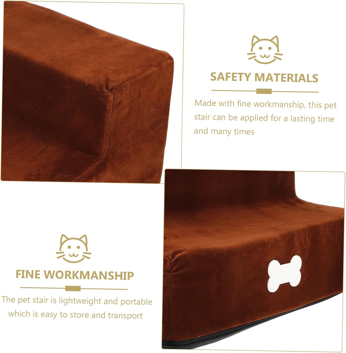 Package Include 1 x pet ladder Characteristics -Color:Light Brown pet stair’ -Luxurious and comfortable: made from comfortable material, this pet staircase provides a soft and non-slip surface for your furry friend's comfort and safety small pet stair. -Easy to and maintain: the steps make it easy to and maintain this pet staircase, ensuring that it remains and safe for your pet to use dog steps pet stairs. -Sturdy and secure: with a structure, this pet staircase is reliable and secure, providing your pet with and stable platform to climb on pet stairs. -Perfect for pets with mobility issues: this pet staircase is an ideal solution for senior pets or those with joint problems, making it easier for them to climb from high surfaces Pet Step Ladder. -Size:38.00X26.00X20.00cm/14.93X10.22X7.86in Small Animal Ladder -Versatile and adaptable: this pet staircase can be used as a climbing platform or a set of stairs, making it a versatile and adaptable addition to your pet's collection of accessories pet dog stairs. -Material:Cloth pet stair stepGoods Informationpet steps small dogs The safe material not only adds a touch of luxury but also provides a non-slip surface for pets to confidently climb.pet steps for large dogs The Pet Staircase Climbing Steps for Cats and Dogs is a must-have for pet owners who want to provide their furry friends with easy access to elevated surfaces.Dog Cat Stairs Whether it's helping an older pet reach their favorite spot or assisting a pet with joint issues, this staircase is designed to make their lives easier