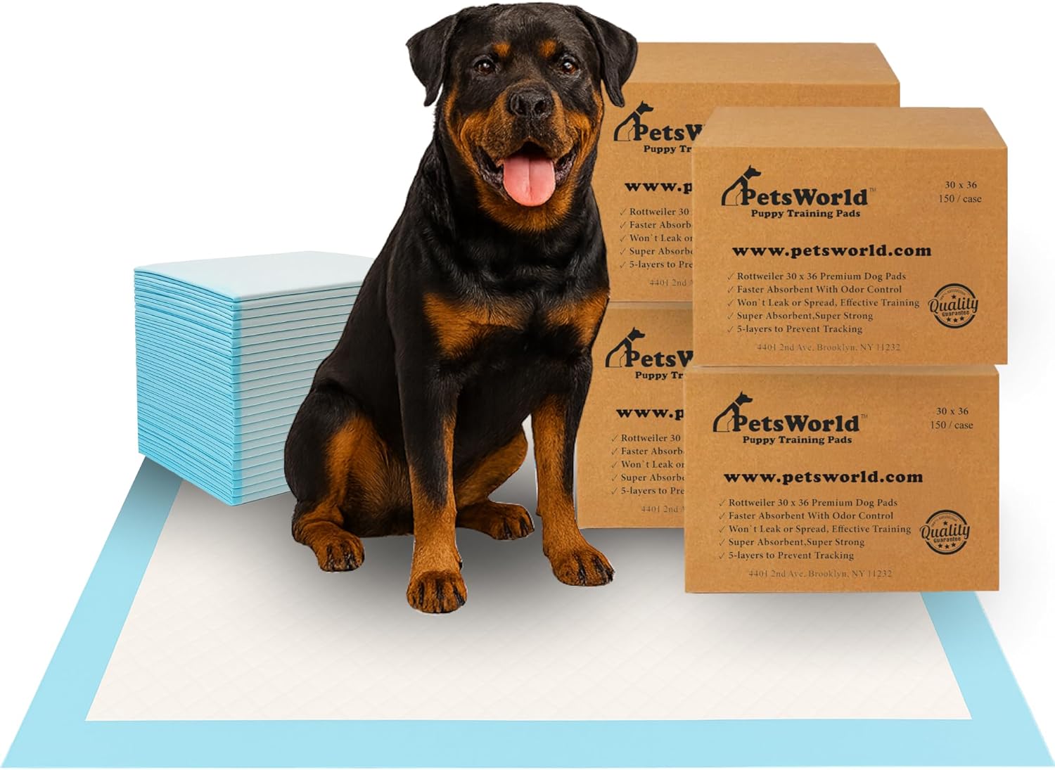 PETSWORLD Extra Large Potty Pads for Dogs, Odor Eliminating 30" x 36", 50 Count Pee Pads for Pets, Gigantic XL Dog Pads, 5 Layer Ultra Absorbent Technology, Leak Proof Training Pads for Dogs & Cats