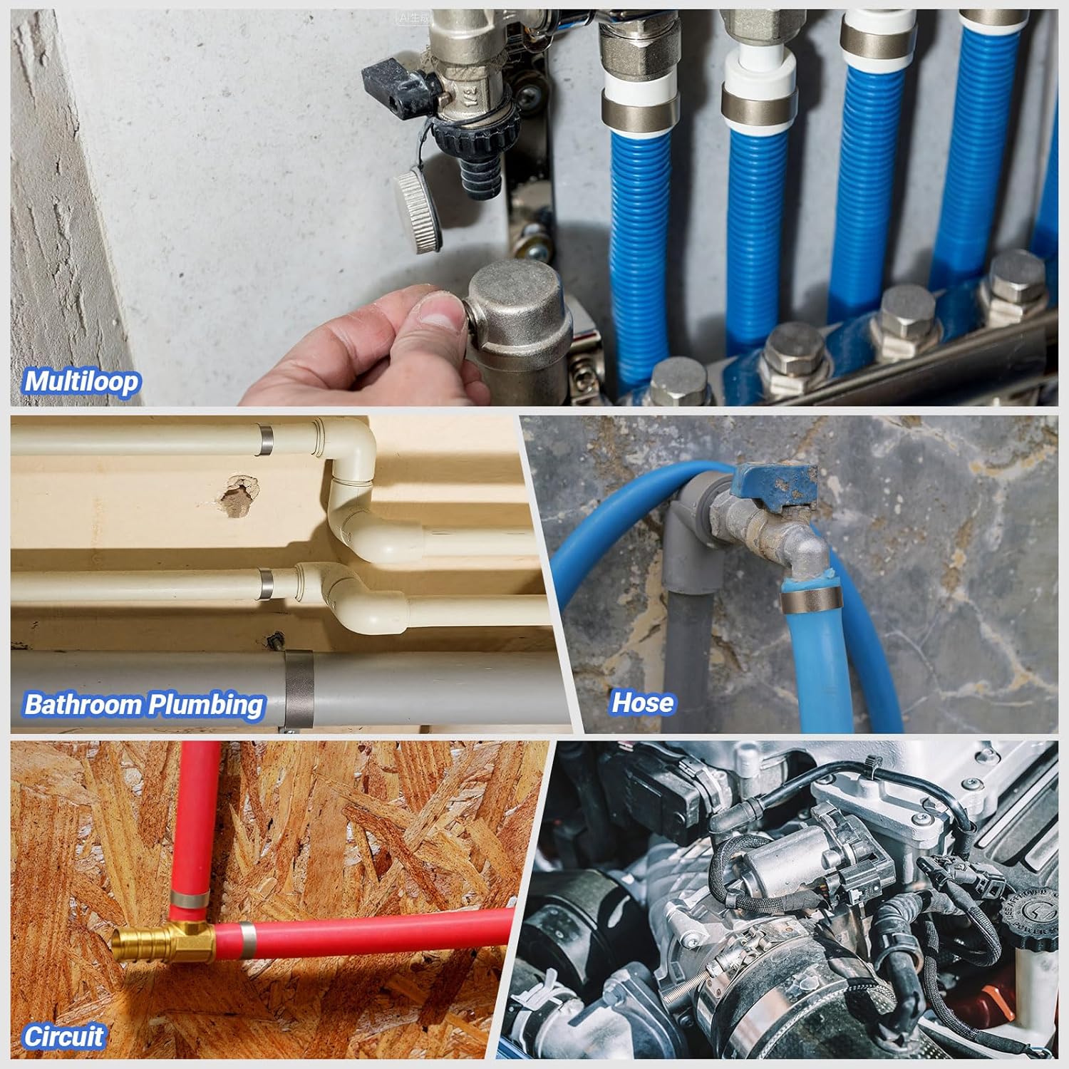 Features: The inclusion of a storage box and a storage bag ensures all components are kept secure and organized. These storage solutions provide not just protection for the tools but also ensure easy portability. The design is conducive to maintaining an orderly workspace, thereby enhancing workflow efficiency through systematic arrangement. Embodying both style and efficiency, the PEX clamp cinch tool's striking blue and the sleek black pipe cutter are visually appealing. Specifications: Material: PEX clamp cinch tool: manganese steel PEX cutter: carbon steel PEX clamps: 304 stainless steel PEX elbows, PEX couplings, PEX tees: brass Storage box: PP Storage bag: Oxford cloth, canvas Color: PEX clamp cinch tool: blue Pipe cutter: black Size: PEX clamp cinch tool: about 10.8 x 3.2 x 0.8 inches/ 27.5 x 8 x 2 cm PEX cutter: about 8 inches/ 20.5 cm PEX clamps: 1/2'', 3/4'' PEX elbows, PEX couplings, PEX tees: 1/2'' Storage box: about 6.5 x 4.7 x 2.3 inches/ 16.5 x 12 x 5.8 cm Storage bag: about 8.1 x 12.1 x 2.2 inches/ 20.5 x 30.7 x 5.5 cm Package includes: 1 x PEX clamp cinch tool 1 x Pipe cutter 50 X 1/2'' PEX clamps 20 X 3/4'' PEX clamps 5 X 1/2'' PEX elbows 5 X 1/2'' PEX couplings 5 X 1/2'' PEX tees 1 x Storage box 1 x Storage bag Notes: Manual measurement, please allow slight errors on size. The color may exist a slight difference due to different screen displays.