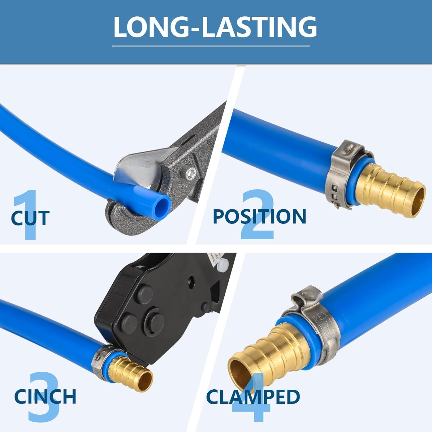 Pex Ratchet Cinch Clamp Tool Stainless Steel RingsMeets ASTM 2098Used to clamp stainless steel clamps during Pex pipe connection for 3/8"-1"One-Hand Ratchet Design: operate the tool with one hand only. Helpful when connecting Pex pipe in close areas with minimal space.LED indicator light to ensure complete connections