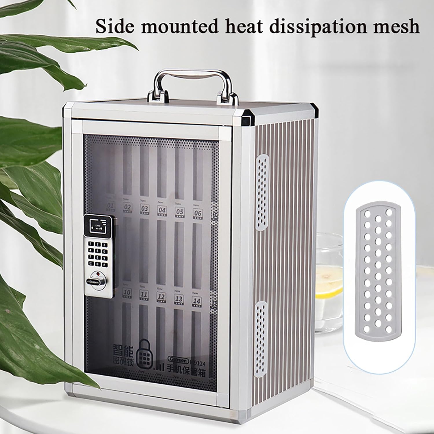 The mobile phone storage cabinet can store different types of mobile phones, which is very convenient and practical. It allows you to store it in businesses, schools and fitness places. Its security lock means that you don't have to worry about losing your phone, so you can study and work at ease.Product parameters:Product name: smart Combination lock mobile phone safe deposit boxProduct material: aluminum+ABS+organic glass door panel+anti-static EVA panel+pearl cotton partition layerProduct model: 24 digitApplications: schools, offices, gyms, mobile phone stores, conference rooms, military, research rooms, work shops, or other places.Please Note1. COLOR: The genuine color of the item may be slightly different from the pictures shown on the website due to many factors such as the brightness of the computer screen or the lighting levels.2. SIZE: The size is measured by hand, so please allow a slight deviation within 1 CM-2CM.3.Only sell cell phone safe deposit boxes, not including cell phones.If we fail to satisfy you for any reason, please contact us in time. We promise every customer with 100% fine after-sell service every time you purchase
