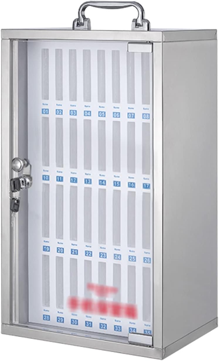 This mobile phone safe can be hand-held, wall-mounted or desktop placed. Name: Mobile phone safe Material: Stainless steel Number of mobile phones that can be stored: 12/24/36/48 digits Size: 12 bits:21*20*26cm (8.26*7.87*10.23 inches), 24 bits:26*20*37cm (10.23*7.87*14.56 inches), 36 bits:28*20*48.6cm (11*7.87*19.13 inches), 48 bits:36*20*48.6cm (14.17*7.87*19.13 inches) Warm reminder: We only sell cell phone storage cabinets, excluding other reference items. Different measurement methods have slightly different sizes. There may be an error of 1-3CM, please refer to the actual product. Actual colors and photos may be slightly different due to different shooting tools, lighting and display parameters. We have many similar products, welcome to our store! If you have any questions, please contact us! Welcome to your purchase, we will provide you with the best quality service and look forward to your greetings.