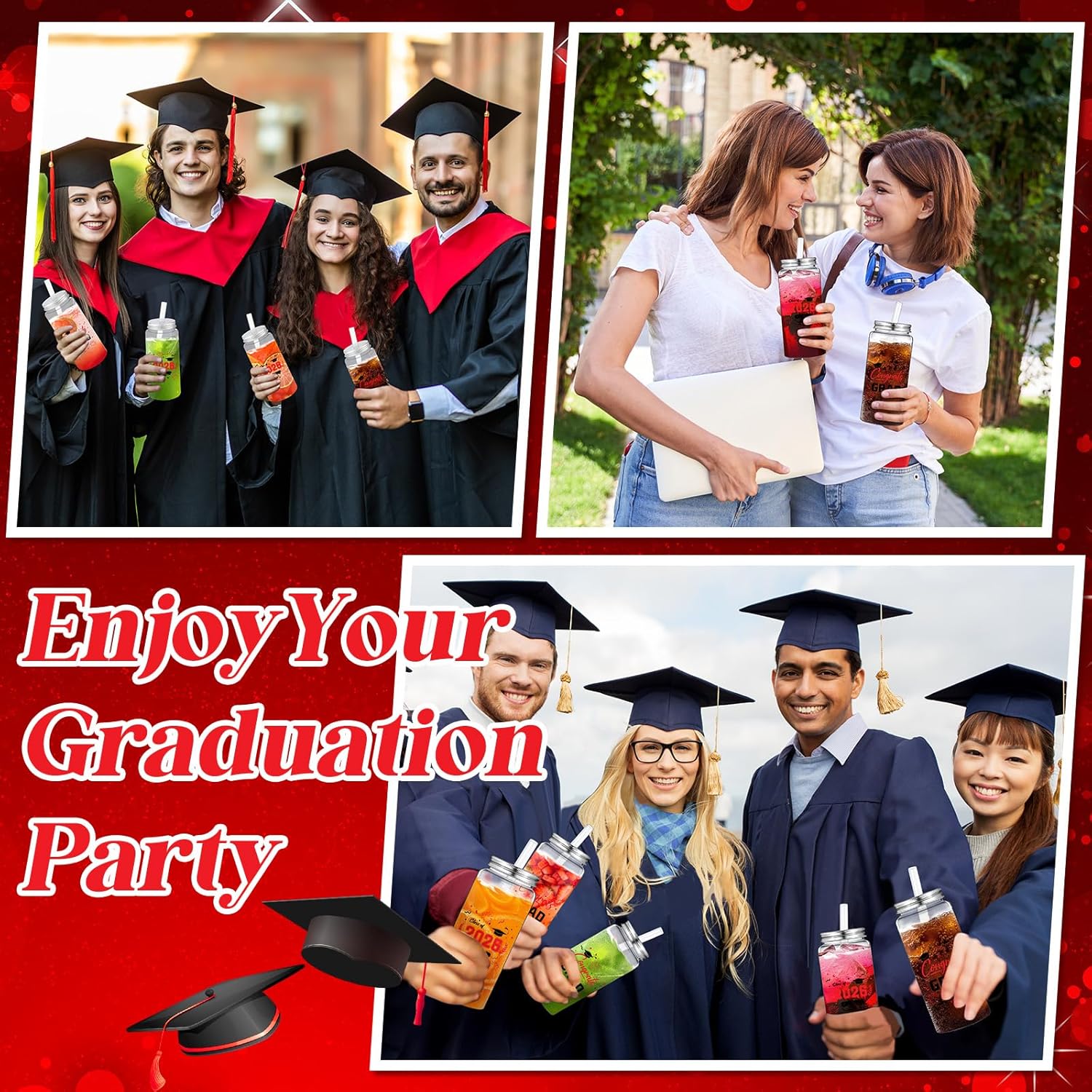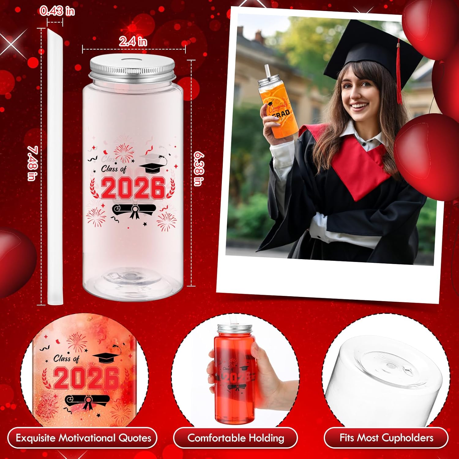 Features: These class of 2026 cups serve as a thoughtful gift for graduates. They not only enhance the party atmosphere but also serve as a meaningful keepsake of this memorable milestone. Suitable for a range of beverages from coffee and tea to soda and cocktails, these clear plastic tumblers simultaneously meet your drinking needs and serve as delightful party decorations. Truly a must-have for all your graduation celebrations. Specifications: Material: plastic Color: clear, black, red Size: 5.83 x 2.48 inches Package includes: 36 x Graduation cups 36 x Straws 36 x Lids Notes: Manual measurement, please allow slight errors on size. The color may exist a slight difference due to different screen displays.