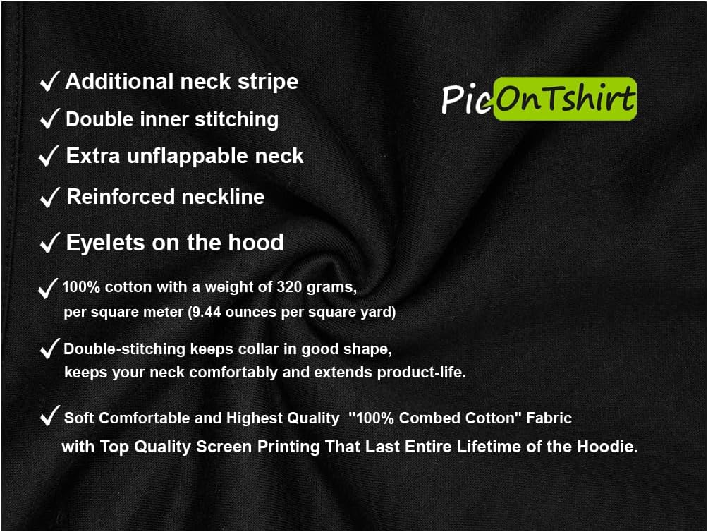 Experience unmatched comfort and durability with the Mammoth 100% Combed Cotton Heavyweight Hoodie – designed for men and women who value premium quality, everyday style, and long-lasting performance. Made from 100% combed cotton, this hoodie is soft, breathable, and skin-friendly. Unlike polyester, it won’t trap excess heat or cling to your skin – keeping you warm without overheating. Its heavyweight build ensures a natural look and reliable wear. ✔ Premium Craftsmanship 100% Combed Cotton – ultra-soft, durable, and resistant to shrinking or losing shape after many washes.Reinforced Details – double inner stitching, extra neck stripe, strengthened neckline, and an unflappable collar for durability and comfort.Extra Lined Hood – added fabric provides warmth, structure, and a stylish finish.Functional Design – zip-up closure, kangaroo-style pockets, and eyelets for everyday practicality.✔ Lasting Quality Each hoodie is designed by our illustrators in Fort Lauderdale, Florida, and produced in our own facility – from cotton to finished product – ensuring consistent craftsmanship every time. Our screen-printed designs resist fading, keeping your hoodie vibrant for years. ✔ Easy Care Machine washable and dryer safe. For best results, wash at 30°C (86°F) and use a gentle drying cycle to extend its life. ✔ Everyday & Gift-Ready Perfect for daily wear, casual outings, sports, or outdoor activities. Also makes a thoughtful gift for Christmas, anniversaries, Valentine’s Day, Father’s Day, or any special occasion. PicOnTshirt – Quality That Speaks for Itself. Since 2006, we’ve crafted premium garments for global brands. With the Mammoth Collection, we bring decades of expertise directly to you – offering superior comfort, superior quality, and timeless style.