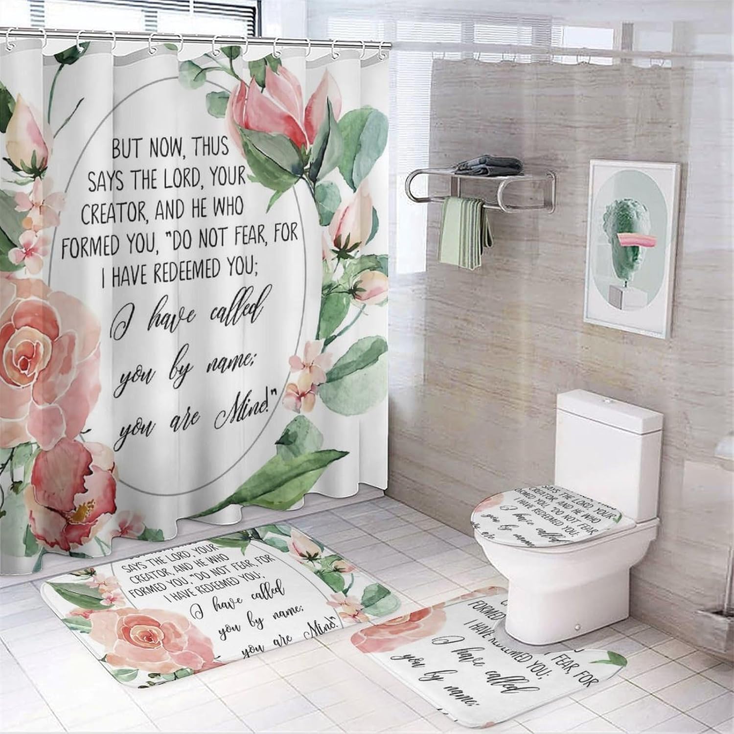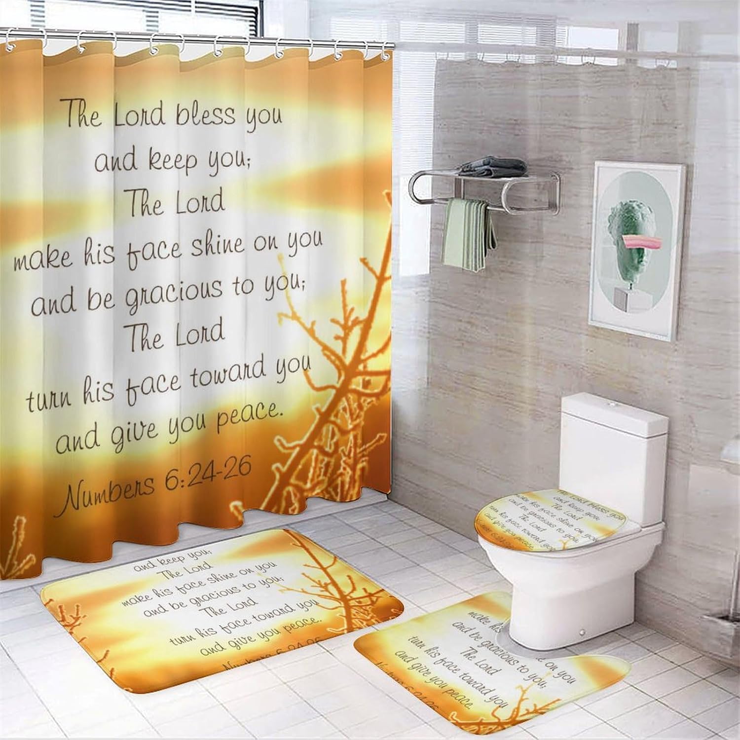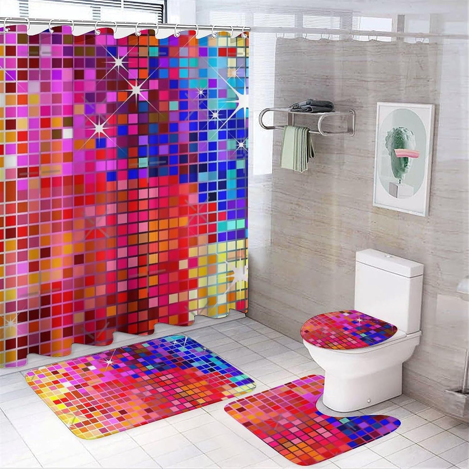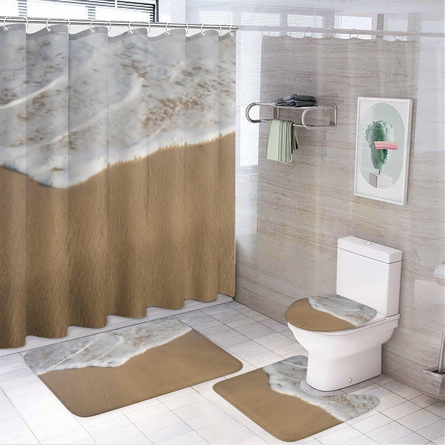 This four piece bathroom set is designed to enhance your daily bathing experience, seamlessly combining functionality with aesthetic appeal. This is the perfect choice to refresh the bathroom space. The bath mat provides a cloud like touch, providing ultimate comfort for your feet, and every step brings a comfortable embrace.The shower curtain has undergone a special coating treatment making cleaning effortless. Their unique printing designs effortlessly complementing various decorative styles.Whether it's awakening vitality in the morning or soothing the body and mind at night, this four piece bathroom set will create a tidy and stylish private bathing space for you.
