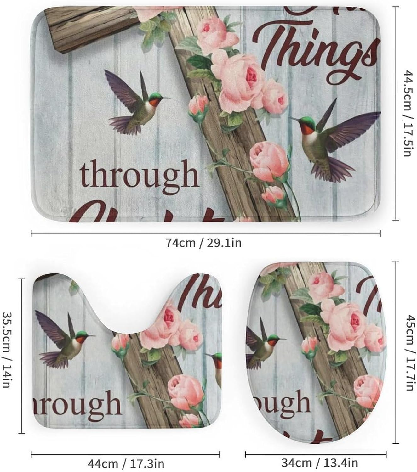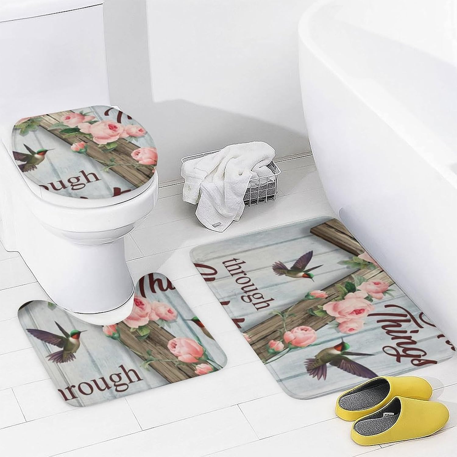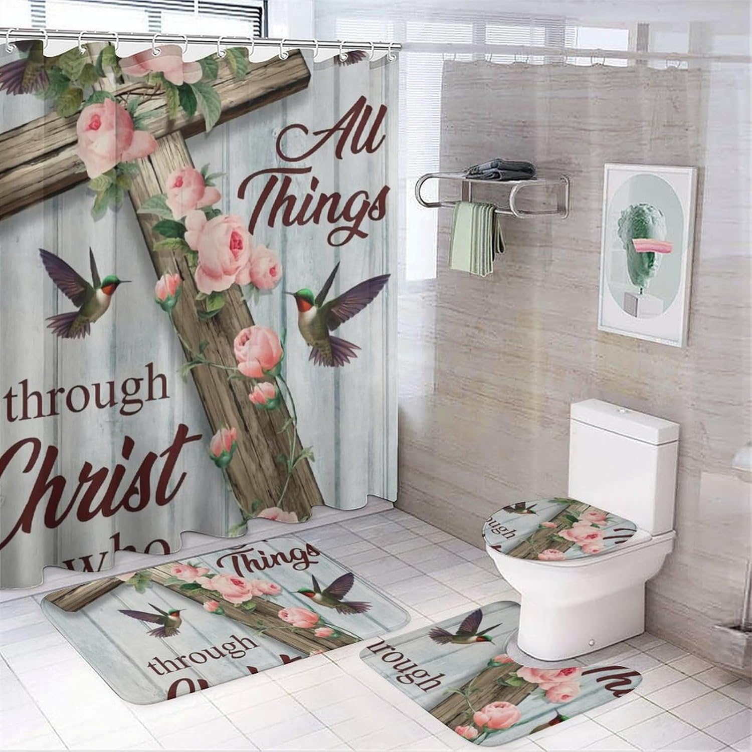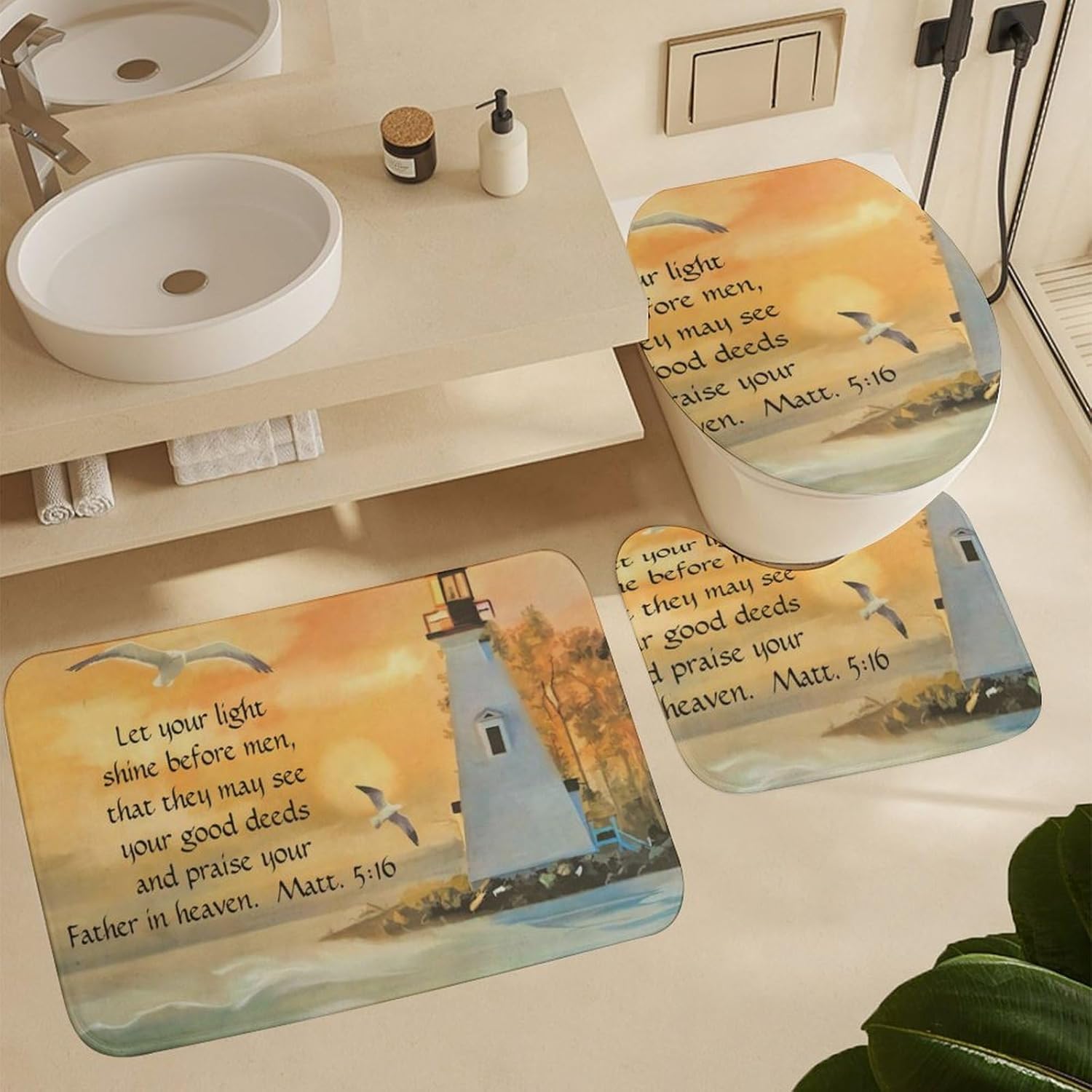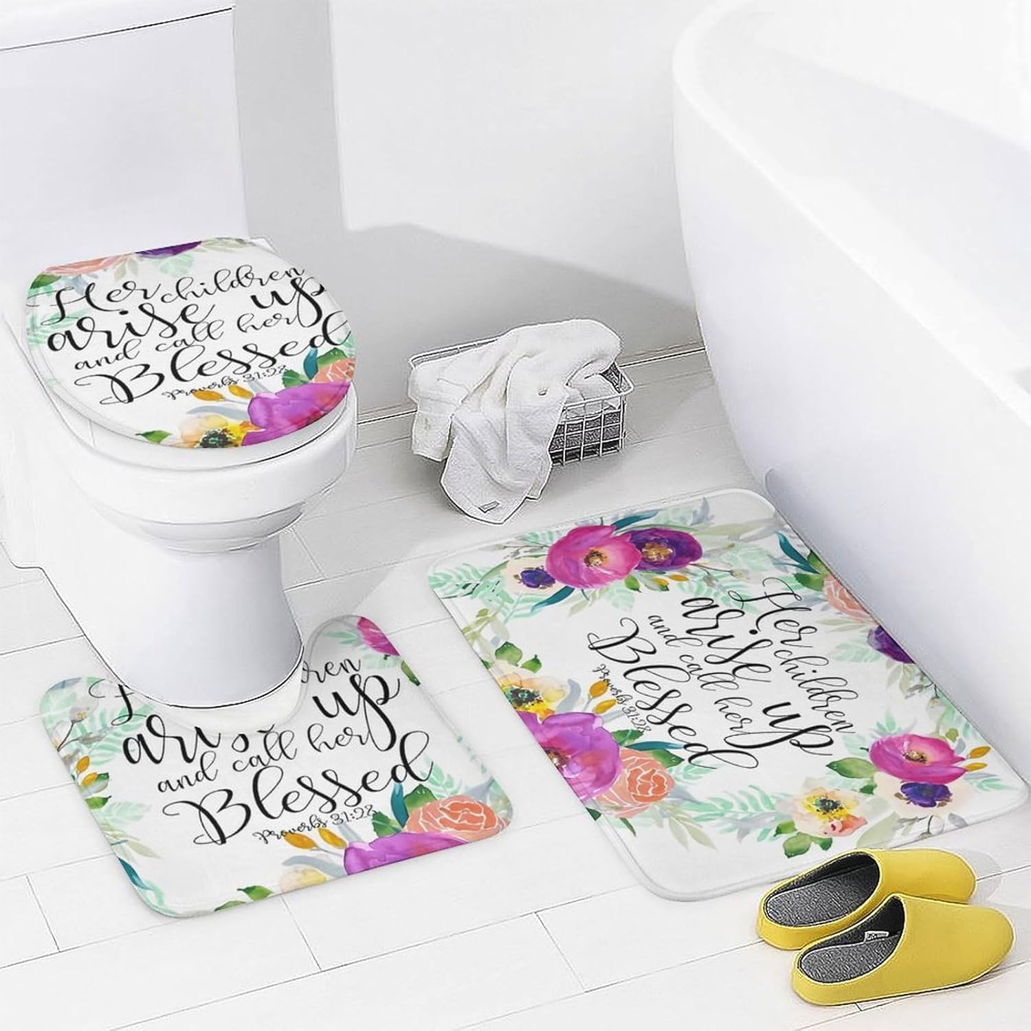 This four piece bathroom set is designed to enhance your daily bathing experience, seamlessly combining functionality with aesthetic appeal. This is the perfect choice to refresh the bathroom space. The bath mat provides a cloud like touch, providing ultimate comfort for your feet, and every step brings a comfortable embrace.The shower curtain has undergone a special coating treatment making cleaning effortless. Their unique printing designs effortlessly complementing various decorative styles.Whether it's awakening vitality in the morning or soothing the body and mind at night, this four piece bathroom set will create a tidy and stylish private bathing space for you.