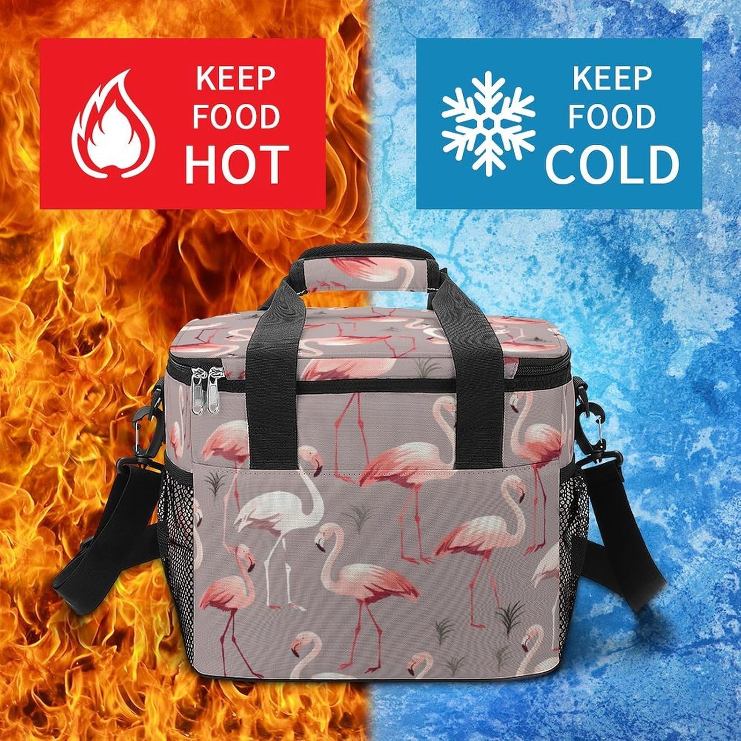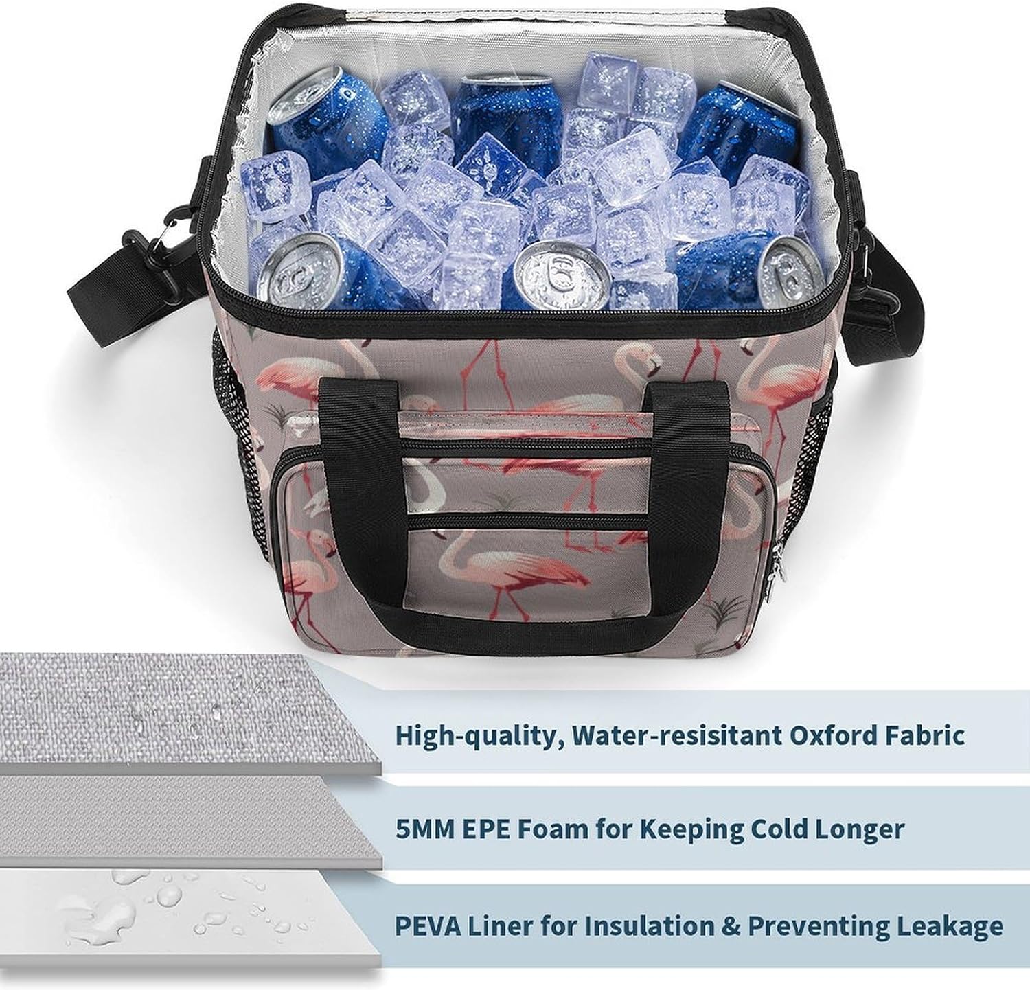 When you're looking for a reliable way to keep your food and drinks fresh while on the move, our Pink Flamingo Pattern insulated cooler tote is the perfect solution. Made from high-density Oxford cloth with an upgraded aluminum foil lining, it offers superior insulation that maintains the temperature of your items for hours. The leakproof design ensures no messy spills, and the sturdy construction means it can handle the rigors of daily use, whether you're commuting to work or heading out for a weekend camping trip.The 22.5L large capacity provides ample space for all your essentials, from sandwiches and salads to cans of soda and bottles of water. The comfortable 66cm straps make it easy to carry, and the compact vertical design doesn't take up unnecessary space in your car or backpack. Whether you're packing a meal for the office, preparing for a family picnic, or stocking up on groceries, this cooler bag has you covered.Forget about flimsy coolers that fall apart after a few uses or fail to keep your food fresh. Our reusable cooler tote combines practicality, durability and style in one package. Its neutral design works for everyone, and its versatility makes it a must-have accessory for anyone with an active lifestyle. Invest in a cooler bag that meets all your needs and simplifies your on-the-go eating experience. Lightweight Cooler Bags Oxford Cloth Cooler Bags Ice Packs Reinforced Handle Ice Chest Cooler Bag Tote Cooler Bag Versatile Cooler Bags Portable Insulated Cooling Everyday Cooler