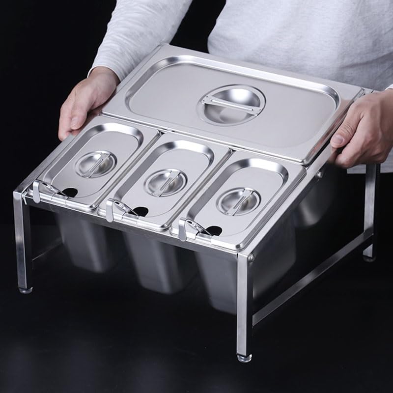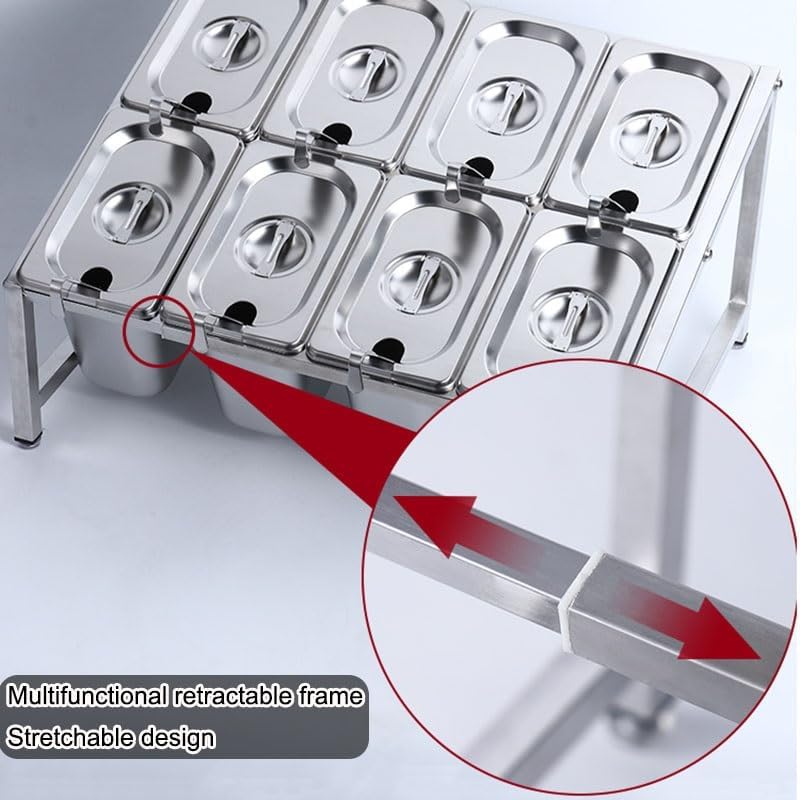 Discover theCommercial Spice Rack Set, designed to elevate your kitchen organization and enhance your cooking experience. Crafted from high-quality stainless steel, this spice rack not only adds a modern touch to your culinary space but also ensures durability for long-term use. With its space-saving design, our buffet containers keep your favorite spices neatly arranged and easily accessible, making cooking and meal prep a breeze. The sleek silver finish complements any kitchen decor, while the thoughtful design allows you to display toppings and seasoning in style. Imagine hosting a dinner party or family gathering where your guests can effortlessly admire your organized spice collection. TheSpice Rack is perfect for both everyday use and special occasions, helping you impress your guests while enjoying the convenience of having your essentials at hand. This set includes one spice organizer stand, providing ample space for a variety of containers. Measurement details ensure you know exactly what you're getting, making it simple to integrate this organizer into your kitchen setup. Upgrade your kitchen with theCommercial Spice Rack Set, where functionality meets aesthetic appeal. Say goodbye to clutter and hello to a beautifully organized spice collection that enhances your cooking experience. Experience the difference today!