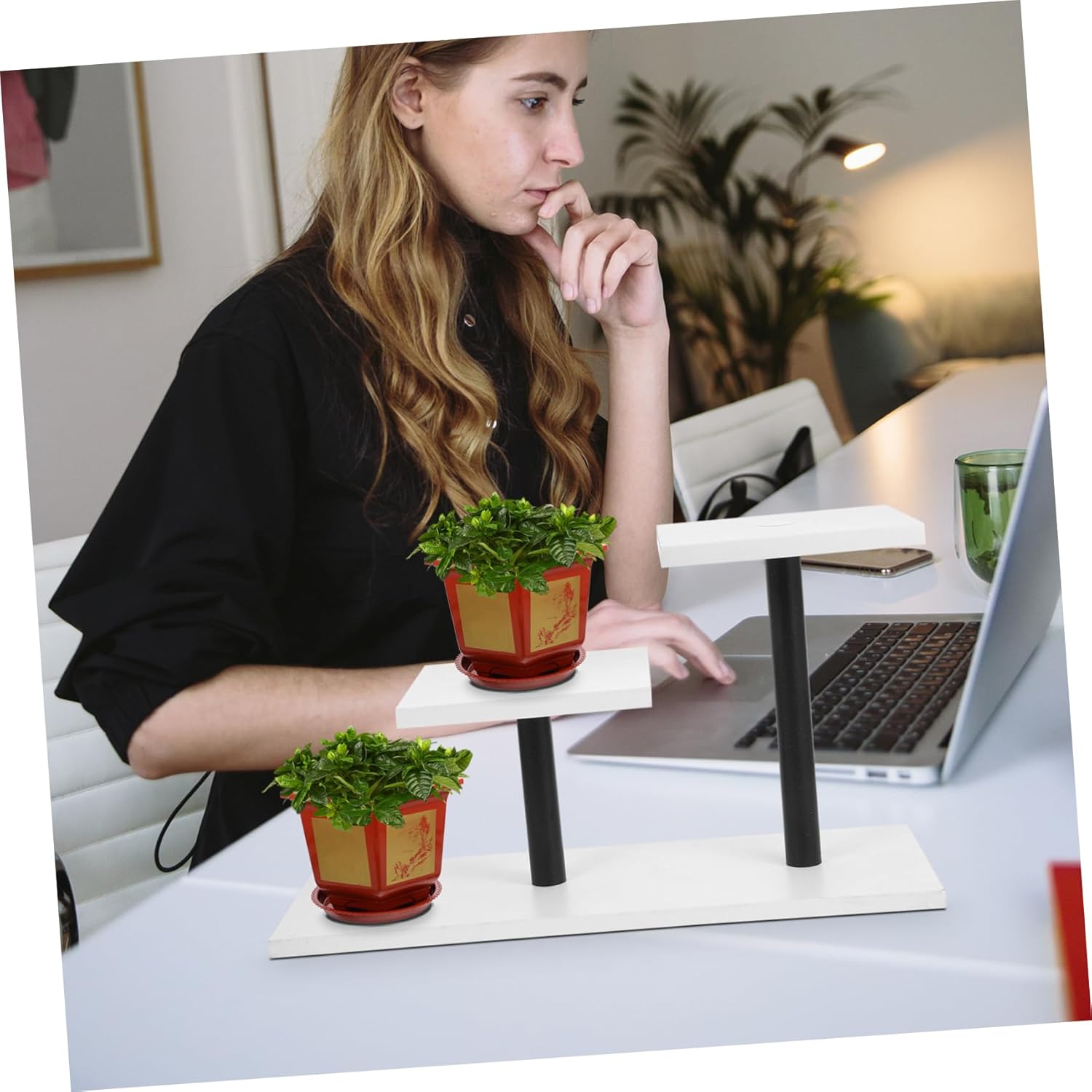 Package Include 1 x plant pot stand Characteristics -Material:Iron and density board reusable plant stand -Square board: 15x15cm antique display shelf - Size: 40.00X20.00X15.00cm/15.72X7.86X5.89in balcony planter base - Color: White office table plant stand -The staggered shelves create a beautiful and visually pleasing arrangement that adds a touch of elegance to any room 3 layer storage shelf. -This plant pot stand is suitable for a variety of environments, including offices, study rooms, and any occasion where a stylish storage is needed small plant stand. -Metal and density board combine to create a sleek and modern aesthetic that complements any decor style decorative rack. -The 3-tier design optimizes the use of space for efficient storage and organization flower stand. -This tabletop plant stand has three tiers, suitable for displaying a variety of potted plants and flowers, adding a touch of nature to any space planter stand.Goods Descriptioncountertop plant stand 3-tiers The Office Desktop Plant Pot Stand is a three-tier display stand designed for indoor use.balcony planter base Whether in an office or study, this plant stand adds a touch of elegance to any environment.planter stand It is suitable for organizing and displaying your potted plants.antique display shelf With its multi-tier design, it maximizes the use of space and provides convenient storage