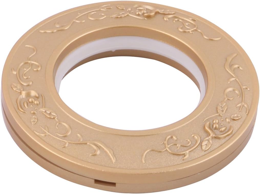 Plastic Flower Vine Pattern Home Window Curtain Rod Hanging Ring 50pcs Dark YellowPackage including 50pcs curtain rings. Made of plastic material for durable.This curtain ring is prepared for hanging curtain, elegant but simple design.Smoothly slide on curtain rod and protect the rod with low noise.No need of nail to install, easy to use and convenient for your daily life.Available Color: Purple, Silver Tone, Dark Yellow, Gold Tone, Brown.Notes:1. The colors may have different as the difference display, please understand.2. Please allow 1-3mm error due to manual measurement, please make sure you do not mind before you bid.