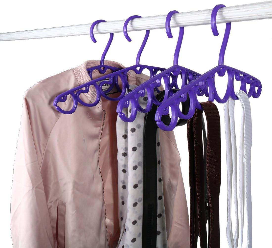 Plastic Scarves Tie Belt Hanger Hook Hanging 7 Holders for Closet Storage 10pcs PurpleYou can hold scarves, belt, tie,socks, earring, space-saving compact and tidying up your closet.Also can be used to hang your T-shirts, made of plastic, no stains on it.Heart shape designed, there are 7 heart shape holders, you can put scarves on them, keeps your scarves clean and tidy.Of course, it is a simple product but it is a good space saver and it looks very neat in the closet.You will like it that you can see all the scarves at once.You can give it to your family as a gift.Unique design non- structure holds your scarves stable.Available Color: Purple, Green, Fuchsia, Light Green.Package Includes:10 x Scarves Tie Belt Hangers Holders(Accessory only, neckties are not included.)Note:1.Please allow 2%-3% error due to manual measurement.2.The colors may have different as the difference display, pls understand.