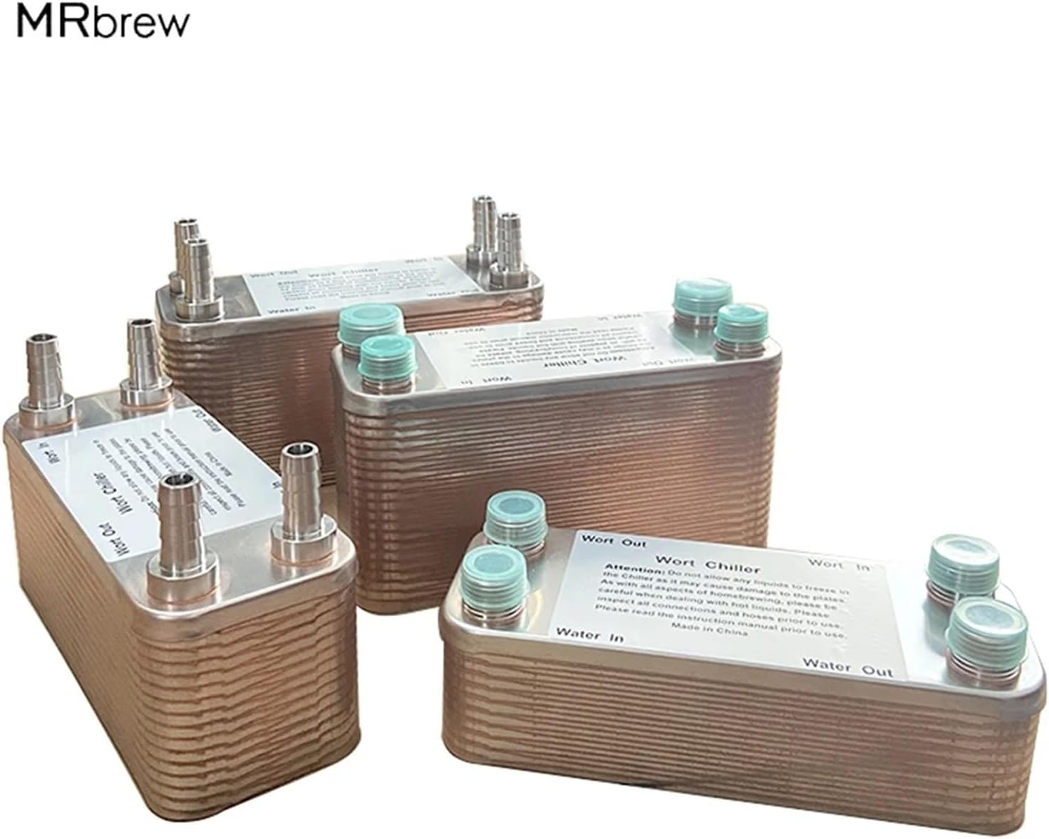 Plate Heat Exchanger Wort Chiller 20/30/40 Plates Beer Bewing Cooler Counterflow Chiller Water HeatingHeat Transfer Area/plate: 0.012m2(0.14ft2)Thickness of plates: 0.3 mm(0.0118")Max Flow Rate: 66.6L/min(17.6gpm)Design Pressure:1.0 Mpa(145 psi)Test Pressure: 2.0 Mpa(290 psi)Refrigeration Capacity: 1-5 KW(3400-17000 BTU/hour)