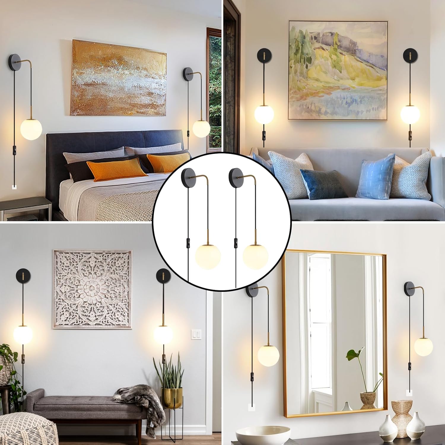 | Model Name | black and brass gold plug in wall sconce |