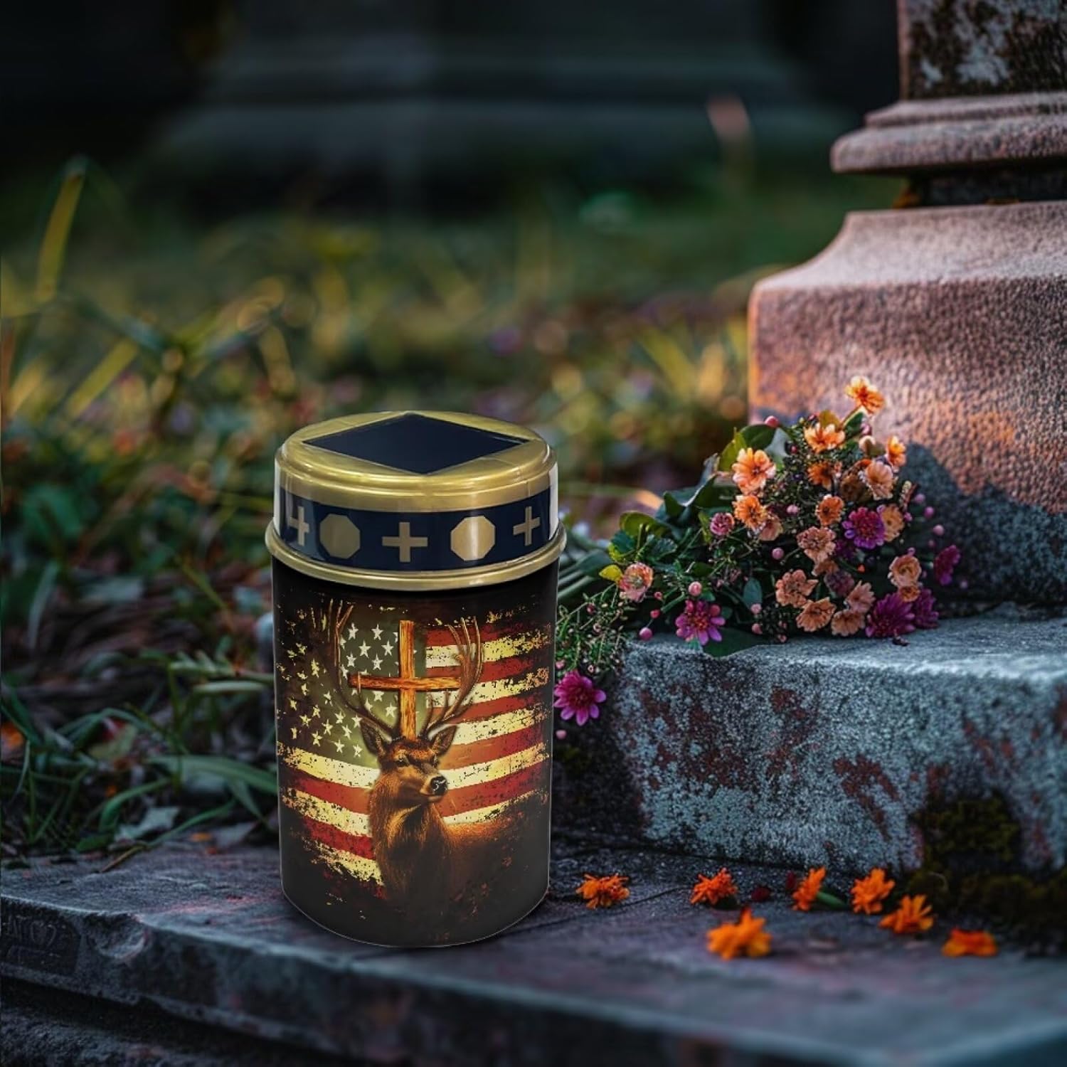 Introducing the cemetery solar lights for grave, an ideal way to honor and remember your loved ones. This elegantly designed outdoor lights is powered by solar energy, energy-saving and environmentally friendly. With automatic lighting at night, it emits a soft and comforting light, creating a peaceful atmosphere. Crafted with a waterproof ABS material, this LED garden lights can withstand various weather conditions, including rain, snow, and other outdoor elements. It's specially designed for long-term performance, making it an ideal choice for outdoor use in cemeteries, gardens, courtyards, and more. The solar memorial candle serves as a symbol of tribute and remembrance, representing your undying love for your cherished family member or friend. Use it for prayer, sacrifice, commemoration, blessing, religious activities, or as a beautiful addition to your festival decorations. This versatile solar garden lights can be installed in various locations, such as cemeteries, gardens, backyards, terraces, lawns, and graves. It's suitable for street lights, buried lights, and cemetery decorations. Even without the ground pile, you can place it independently on a table as a unique decorative item. The dimensions of the solar pathway lights are 4.7 inches (H) x 2.5 inches (D), and the total height after installation is 9.4 inches. Its perfect size combined with a unique and elegant print makes it highly attractive. Installing it is a breeze, as no additional tools are required. Honor your loved ones with the solar powered cemetery lights, let its gentle glow bring comfort and remembrance to your cherished memories.