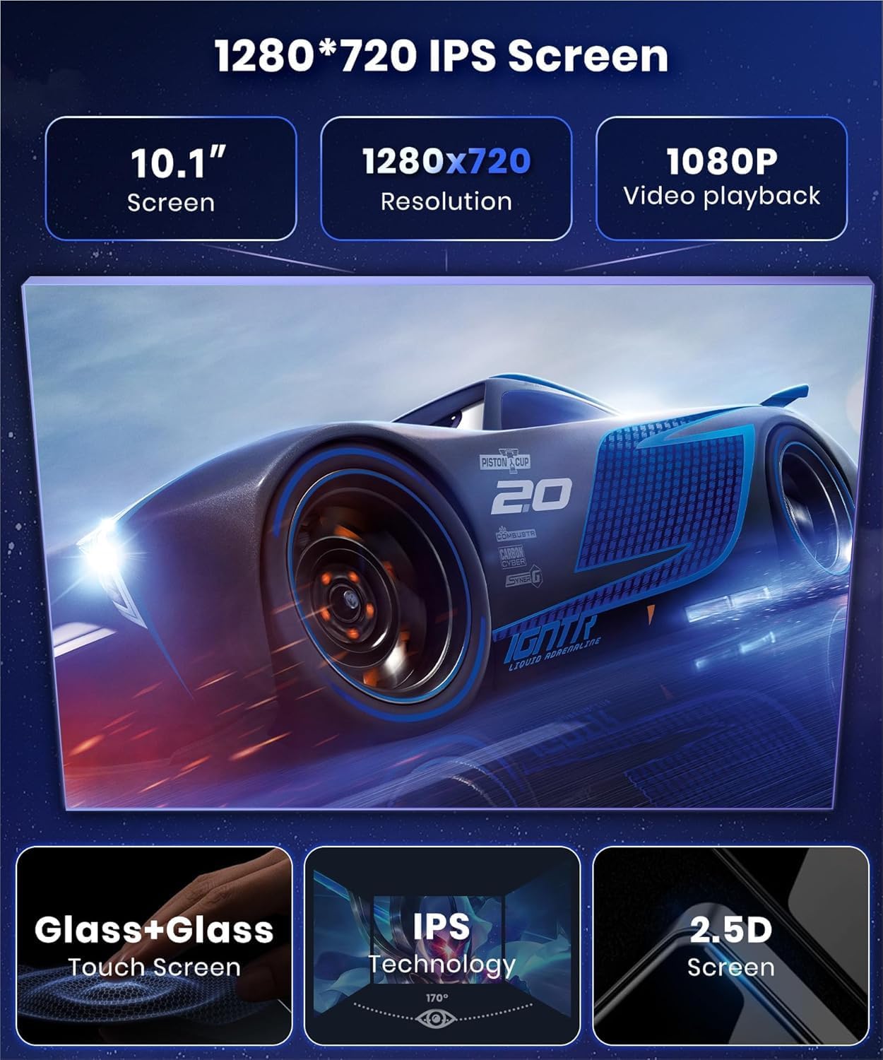 • 2【4G +64G Smooth Performance】Powered by Android 15, along with 4GB RAM and 64GB ROM, it ensures smooth, responsive operation. The 1280×720 HD touchscreen stands out: crisper, brighter, and more vivid than regular displays