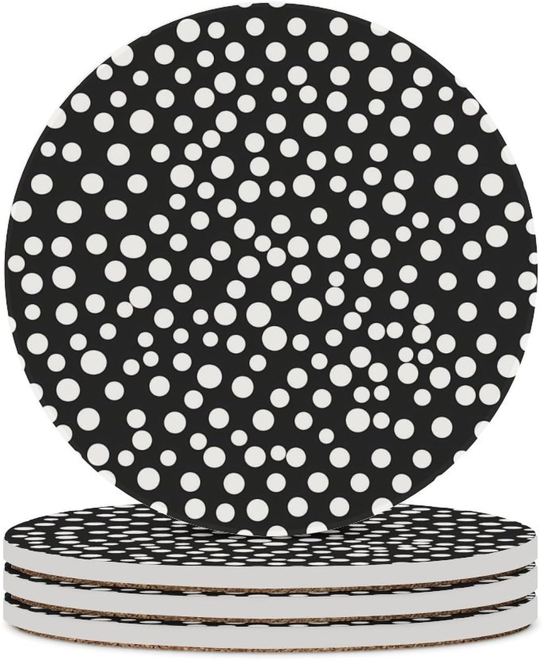 Polka Dot Black White Coasters for Drink Round Ceramic Coaster with Cork Base Home Decorative 6PCS