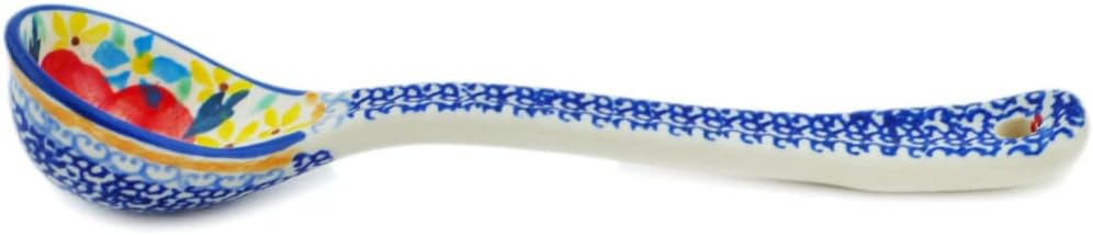 Genuine Polish Pottery handmade in Boleslawiec, Poland. Region celebrated for its long-standing ceramic tradition and artisanal craftsmanship.This authentic, hand-painted Polish stoneware Spoon in the Rainbow Field pattern featuring a Signature UNIKAT design is handcrafted by local artisans in Boleslawiec using traditional hand-painting and high-temperature firing techniques for lasting durability and everyday functionality.UNIKAT Signature Design:UNIKAT pieces feature intricate hand-painted artwork signed by the artist and produced in limited quantities, making each one a collectible work of art.Certificate of Authenticity:Includes an official certificate verifying the handmade origin and authenticity of the piece.Care Instructions:Your order includes care instructions and helpful information, especially useful when gifting Polish Pottery.Dimensions:1.2" high, 1.3" wide, 6.5" long (max outside edge or handle).Certified Polmedia Polish Pottery Features:* Lead & Cadmium Free: Safe for everyday use.* Microwave Safe: Heat food or drinks with confidence.* Dishwasher Safe: Pattern will not fade.* Oven Safe (up to 480F): Excellent for baking and reheating.* Freezer Safe: High-fired stoneware handles temperature changes.* Chip & Scratch Resistant: Durable for daily use.* Hand-Painted Artistry: Decorated by skilled artisans.* Never-Fade Colors: Patterns remain vibrant forever.The Essence of Polish Pottery:For generations, artisans in Boleslawiec have crafted stoneware valued for durability, heat distribution, and long-lasting beauty. This tradition continues today in every piece of Polish Pottery.